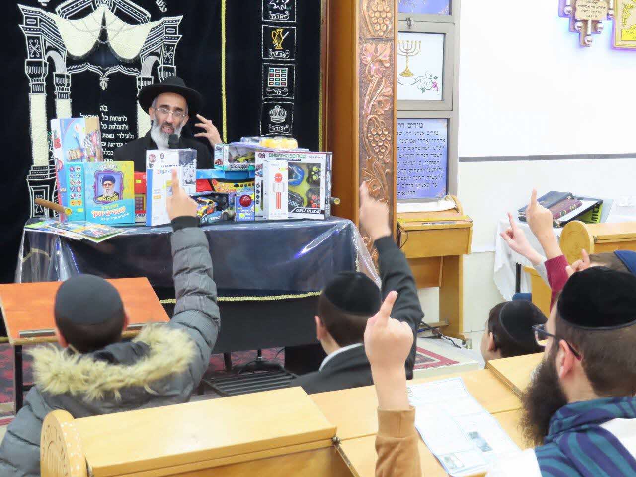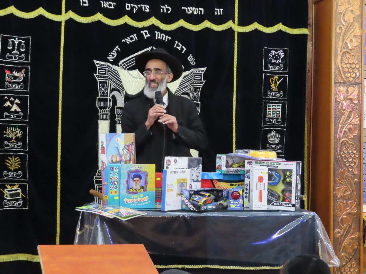 על השולחן המרכזי הונחו פרסים יקרי ערך המתאימים לכל הגילאים, במס' שאלות כובד הגר"מ כהן לשאול את הילדים, להפתעת המארגנים, ילדים רבים הרימו אצבע אשר ידעו לענות ולפרט את התשובה, הגר"מ כהן שהביע את שמחתו על כך נשא דברי תורה וברכה לילדים ואמר, תענוג גדול לראות את הילדים מונחים היטב בהלכות חנוכה ויודעים לענות, יהי רצון שתעלו מעלה מעלה במעלות התורה ותזכו להיות מורי הוראות בישראל, נזכה כולנו יחד לקבל את משיח צדקנו במהרה בימינו ונחגוג את חג החנוכה בבית המקדש, כהנים בעבודתם, לווים בדוכנם וישראל במעמדם ונזכה לשמחה אמיתית.