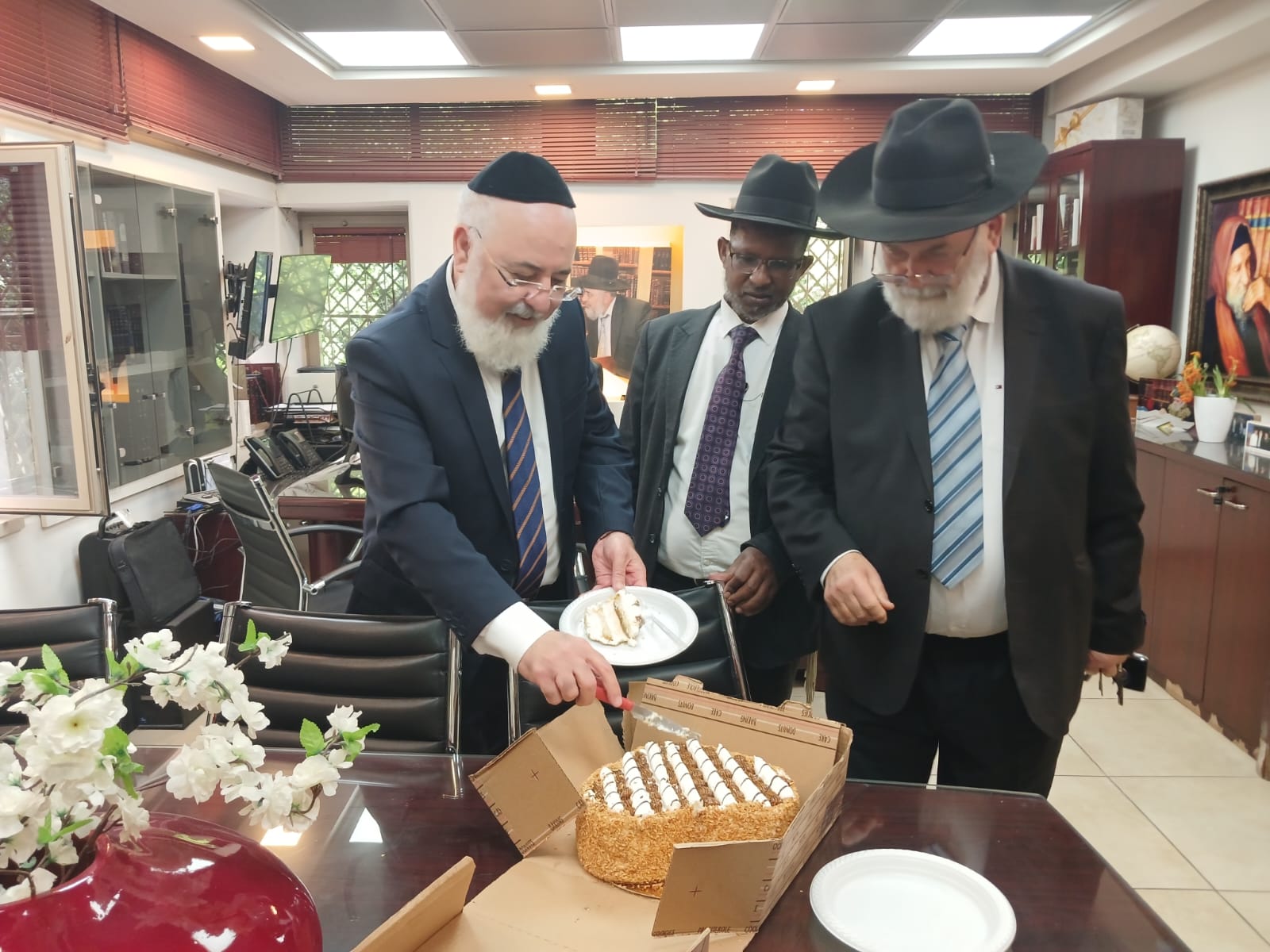 עובדים ועובדות עם רבני המועצה הדתית, בירכוהו עד 120 בבריאות עם נחת ושמחה ושימשיך עוד בתפקידו לזכות את הרבים בעבודת הקודש במועצה הדתית.
