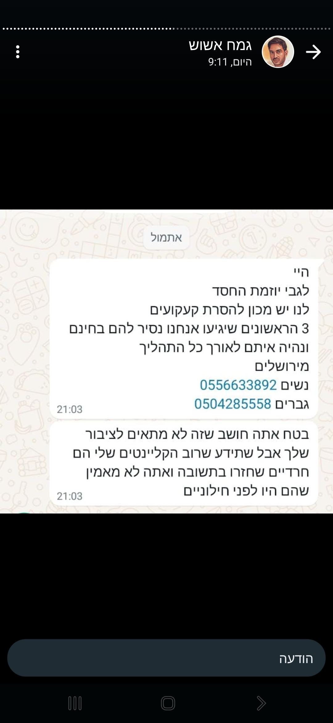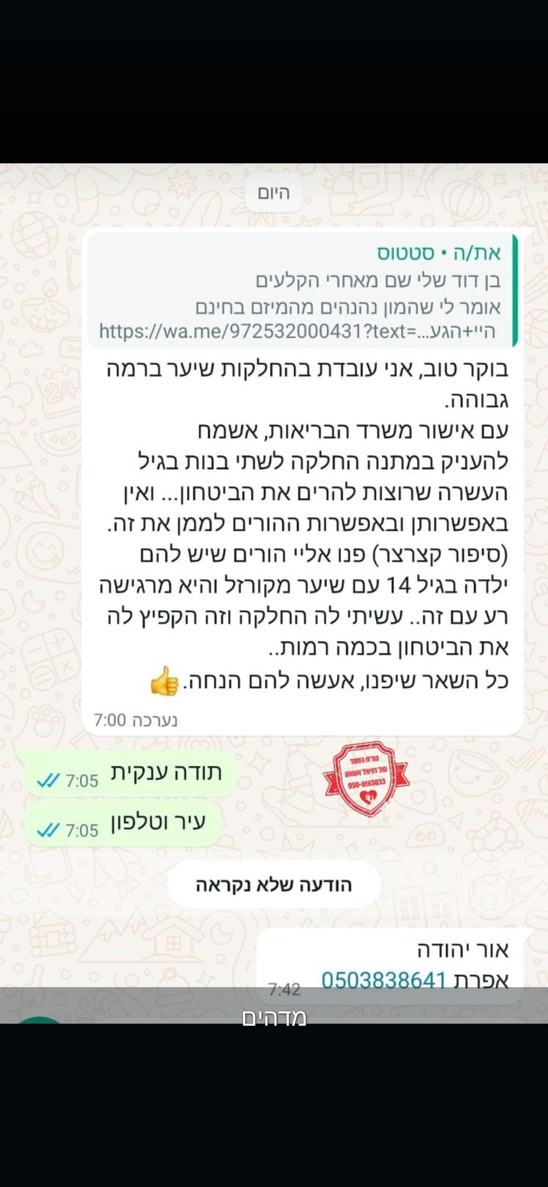היום בבוקר עלו בקבוצת הוטסאפ של אשוש היוזמות הבאות, בזו אחר זו: ספרית הציעה החלקת שיער חינם לילדה שזקוקה לכך ("ביצעתי לילדה מתולתלת והדבר שיפר לה את הביטחון העצמי"), בסלון נשים הציעו טיפולי לק ג'ל לנשים מפונות מהצפון או מהדרום, ומדריכות כלות ואפילו מטפל זוגי מציעים טיפולים חינם (שימו לב: אין להתקשר למספרים המופיעים בתמונות, מאחר שחלפה רבע שעה מאז הועלו לאוויר והם כבר זכו להמוני פניות).