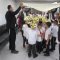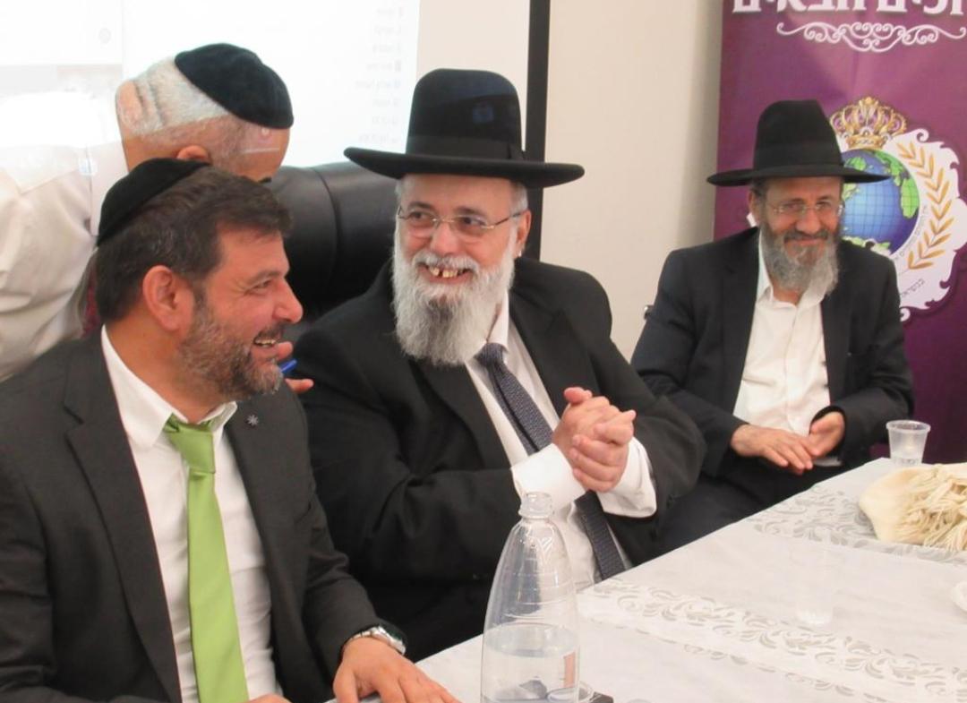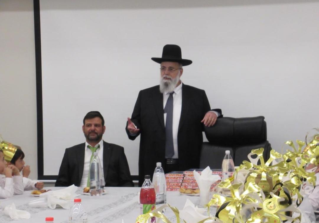 הרה"ג ר' אבנר עמר נכנס לאולם כשעל פניו ארשת שמחה. את פניו קבלו מנהל בית הספר הרב יעקב קריספין יחד עם הרב ישעיה חזן המנהל הרוחני.