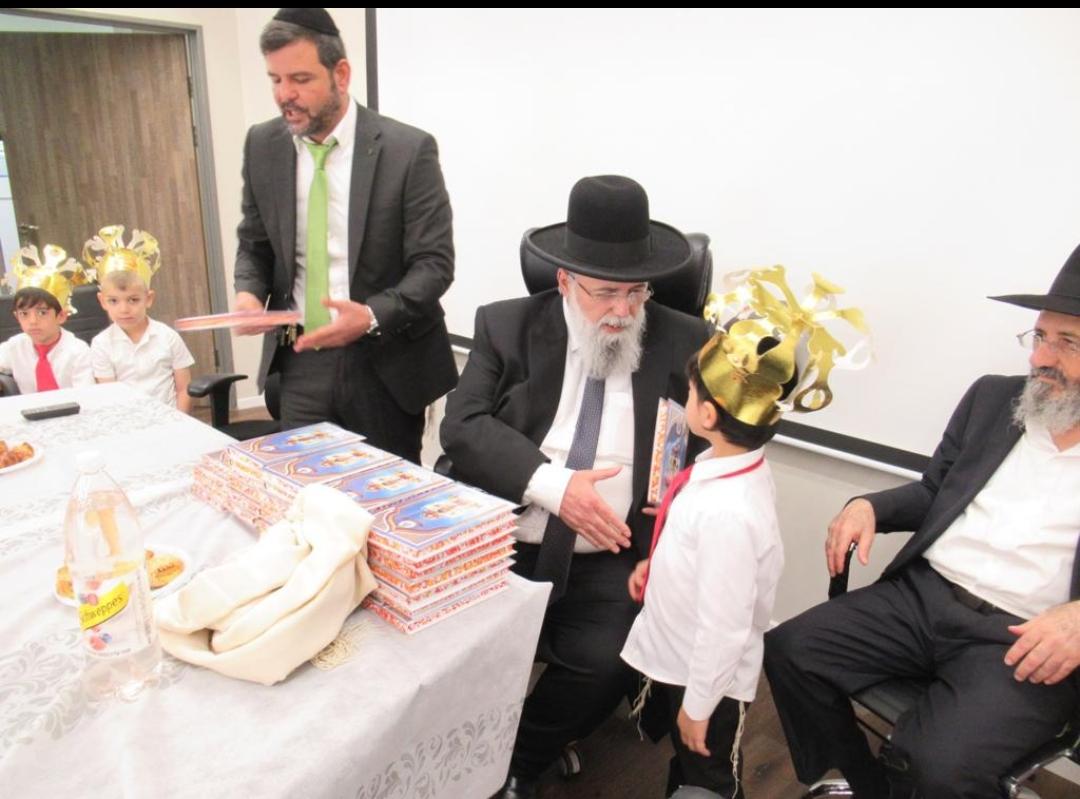 הילדים שחבשו כתר לראשם ועניבה מיוחדת, ניגשו בזה אחר זה ובמעמד מרטיט חילק הגר"א עמר את סידורי התפילה לילדים הרכים, כשכל תלמיד מקבל את סידור התפילה בחביבות מיוחדת ומנשק את סידור התפילה באהבה.