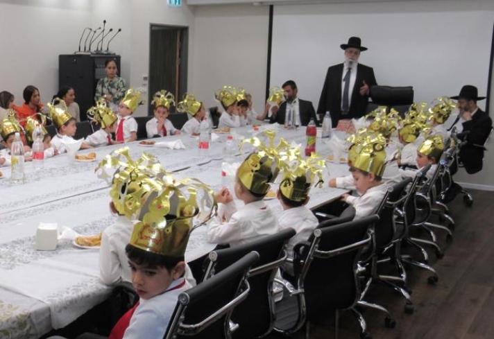 תחילה עברו התלמידים תחת 'חופה' וזכו לברכת כהנים. לאחר מכן הוזמנו לאולם הישיבות שהיה מקושט בשילוט מרהיב עין. הילדים וההורים הסבו סביב השולחן.