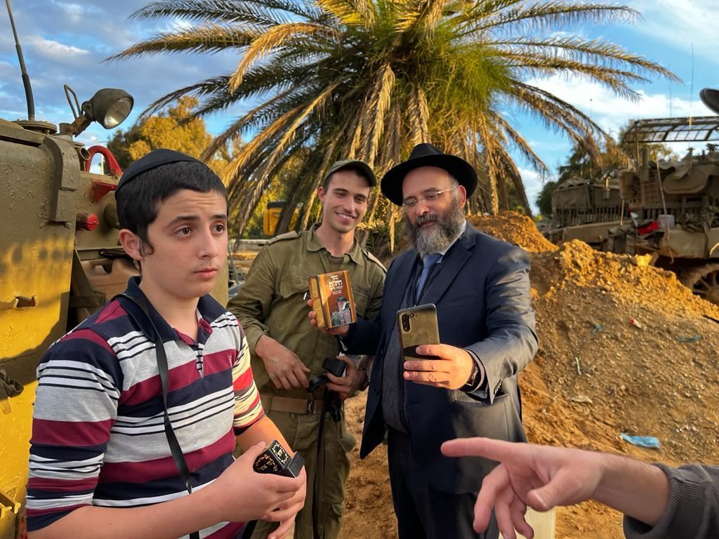 גם לאחר שיצא משם, שמע על שלושה חיילים שקיבלו על עצמם בימים אלו להתחיל להניח תפילין, נסע במיוחד וחזר שוב לשטח הכינוס ולצד הטנקים איתר את החיילים, והעניק לכל אחד מהם תפילין מהודרות שמיד כבר החלו להניח וקראו "שמע ישראל".