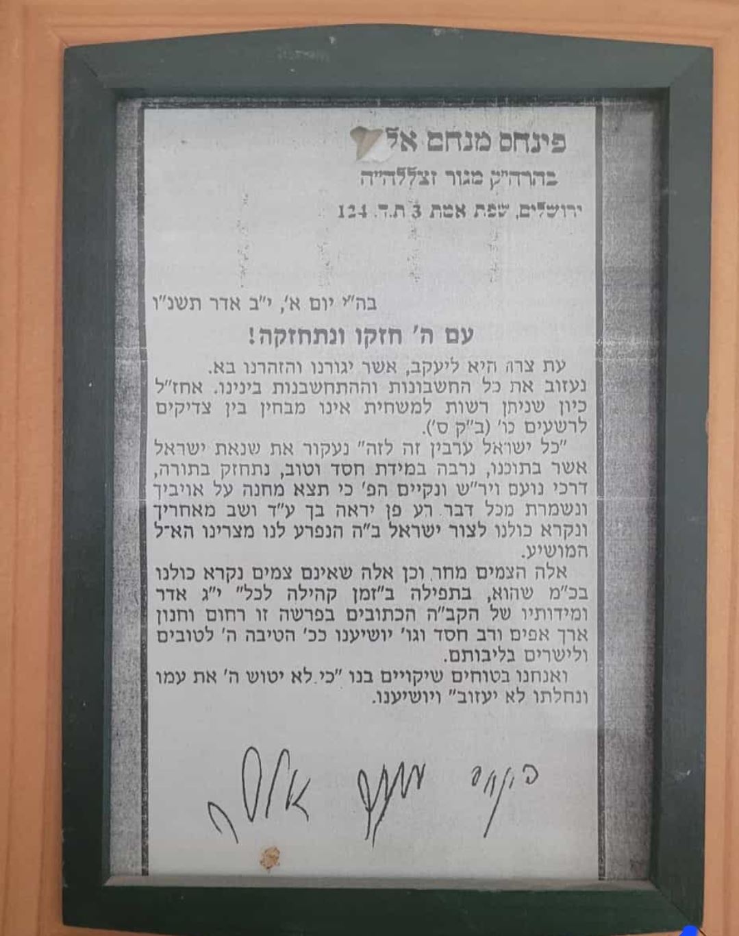 נפטר למחרת הפורים, בימי הפיגועים המחרידים, יומיים לאחר שפירסם את מכתבו שבו קרא "לעזוב את כל החשבונות בינינו" * עליה רבתית מהעיר לציונו שבחצר ישיבת שפת אמת