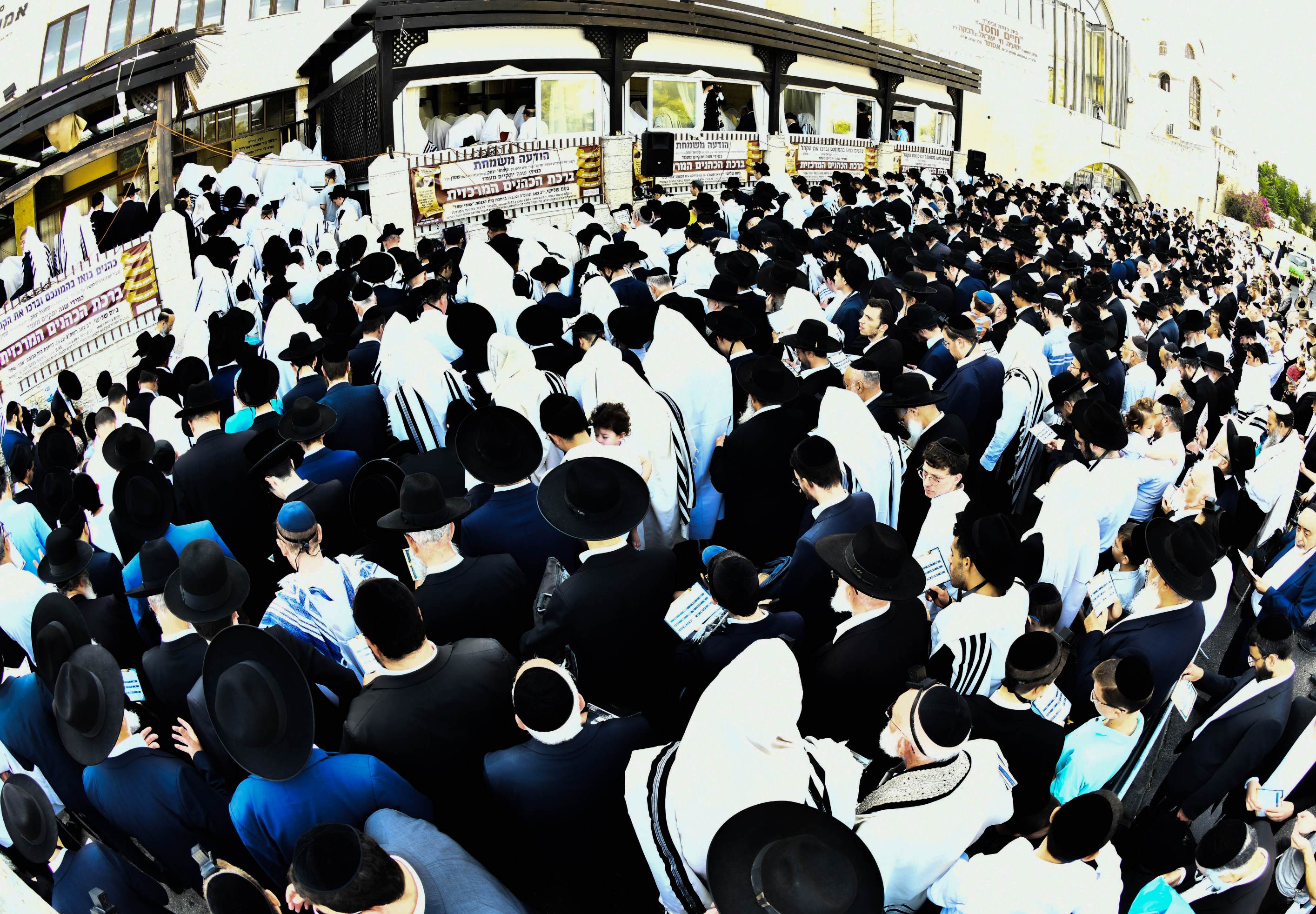 עם הגיעו בחזרת הש"ץ לאחר ברכת ההודאה לברכת כהנים, הרחבה התמלאה בקהל המונים כשנשים התרכזו במדרכה ממול, הס הושלך בקהל ונשמע למרחקים קולם של מאות הכהנים כשקהל המונים עונה "אמן" בהתרגשות.