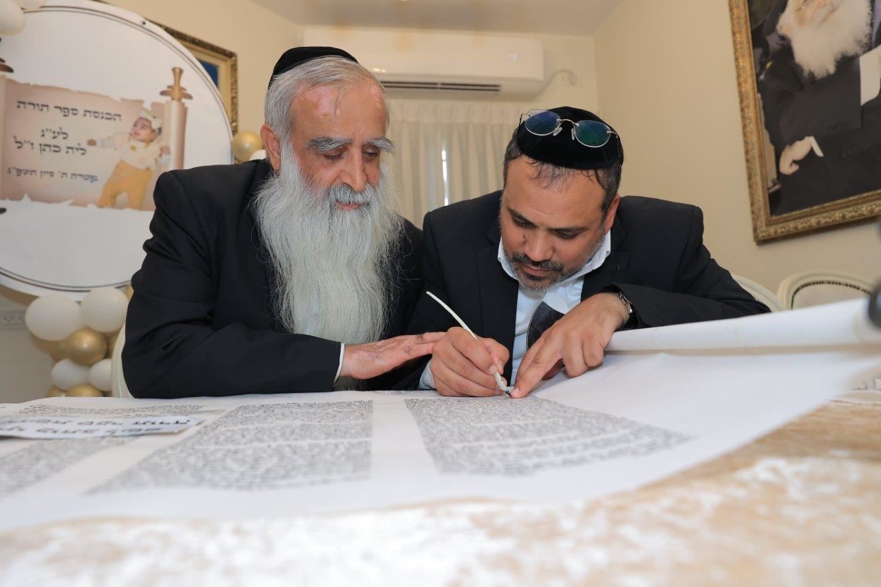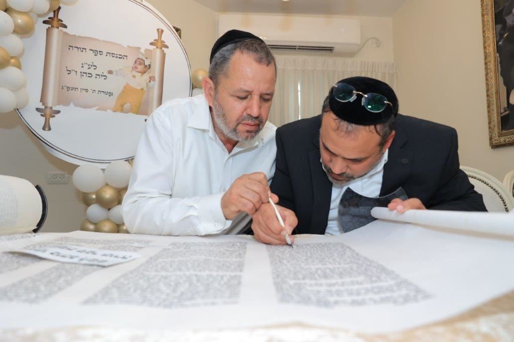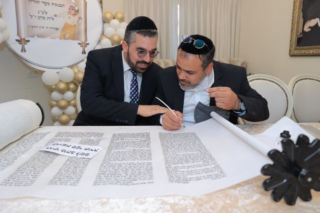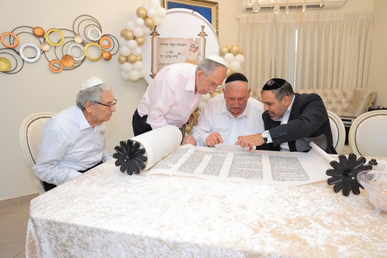 בשעות אחר הצהריים, החל מעמד כתיבת האותיות האחרונות בספר התורה בבית משפחת הגאון רבי שמעון כהן שליט"א, לשם הגיעו רבנים, אורחים וידידי המשפחה שהשתתפו בכתיבת האותיות האחרונות בספר התורה.