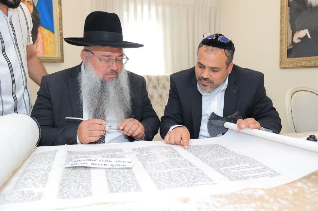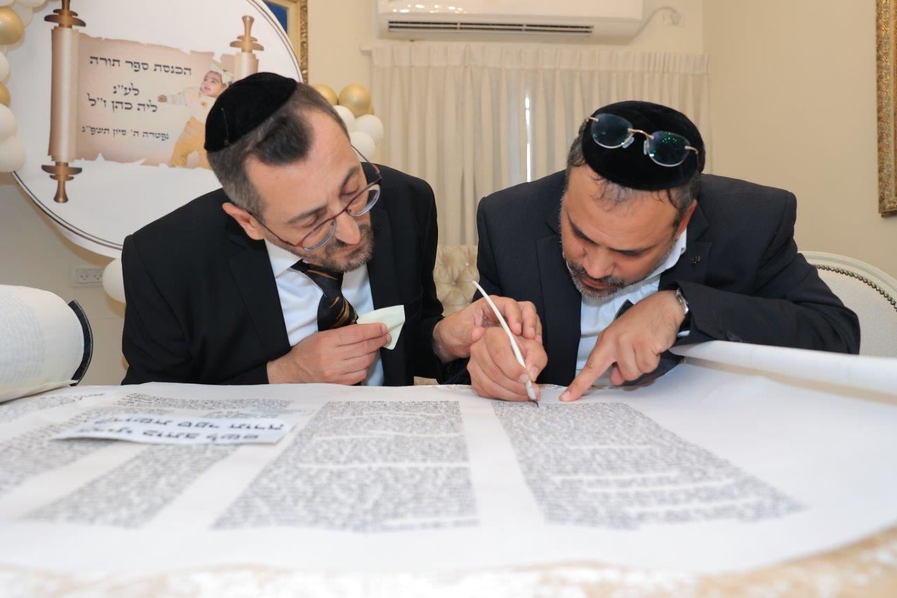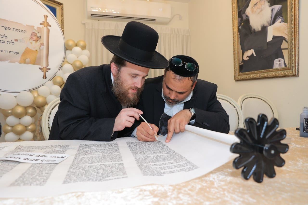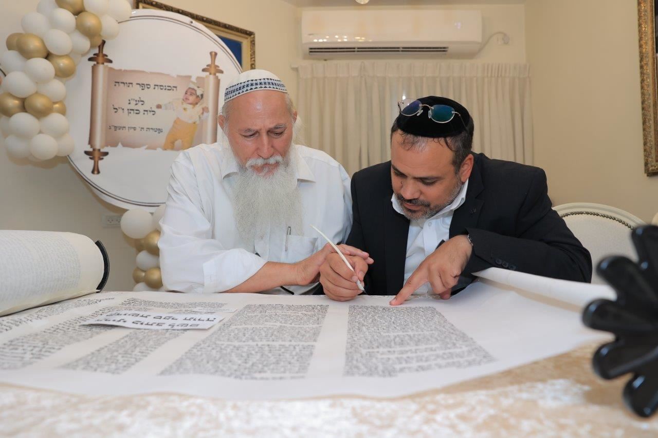 בשעות אחר הצהריים, החל מעמד כתיבת האותיות האחרונות בספר התורה בבית משפחת הגאון רבי שמעון כהן שליט"א, לשם הגיעו רבנים, אורחים וידידי המשפחה שהשתתפו בכתיבת האותיות האחרונות בספר התורה.