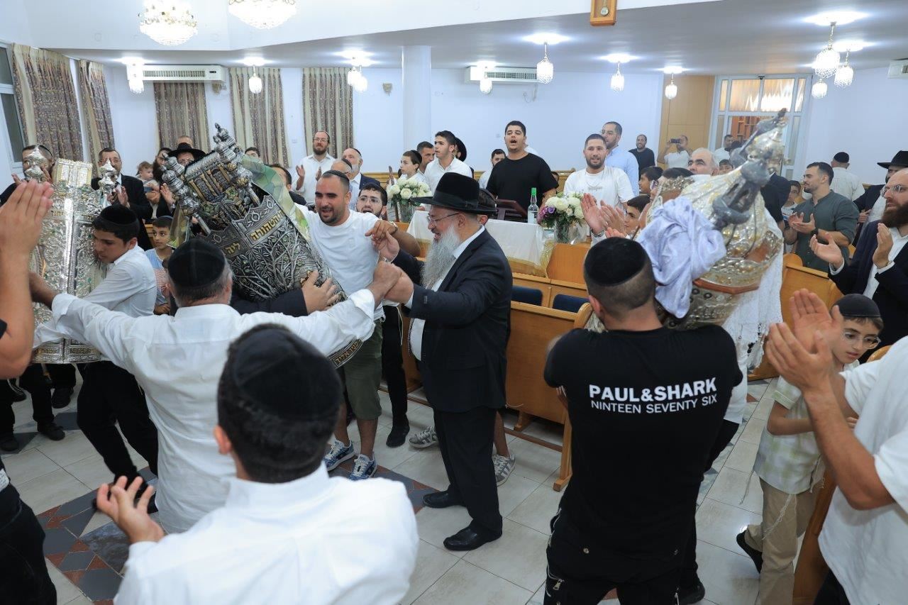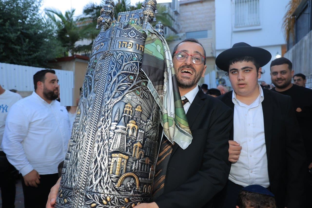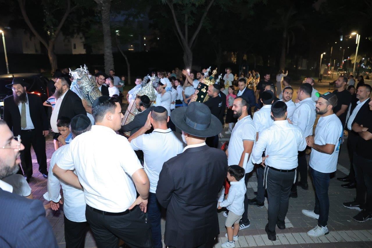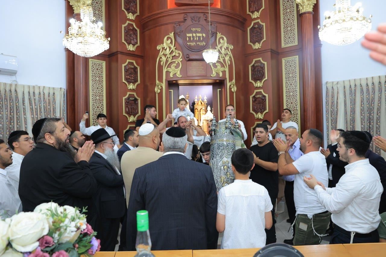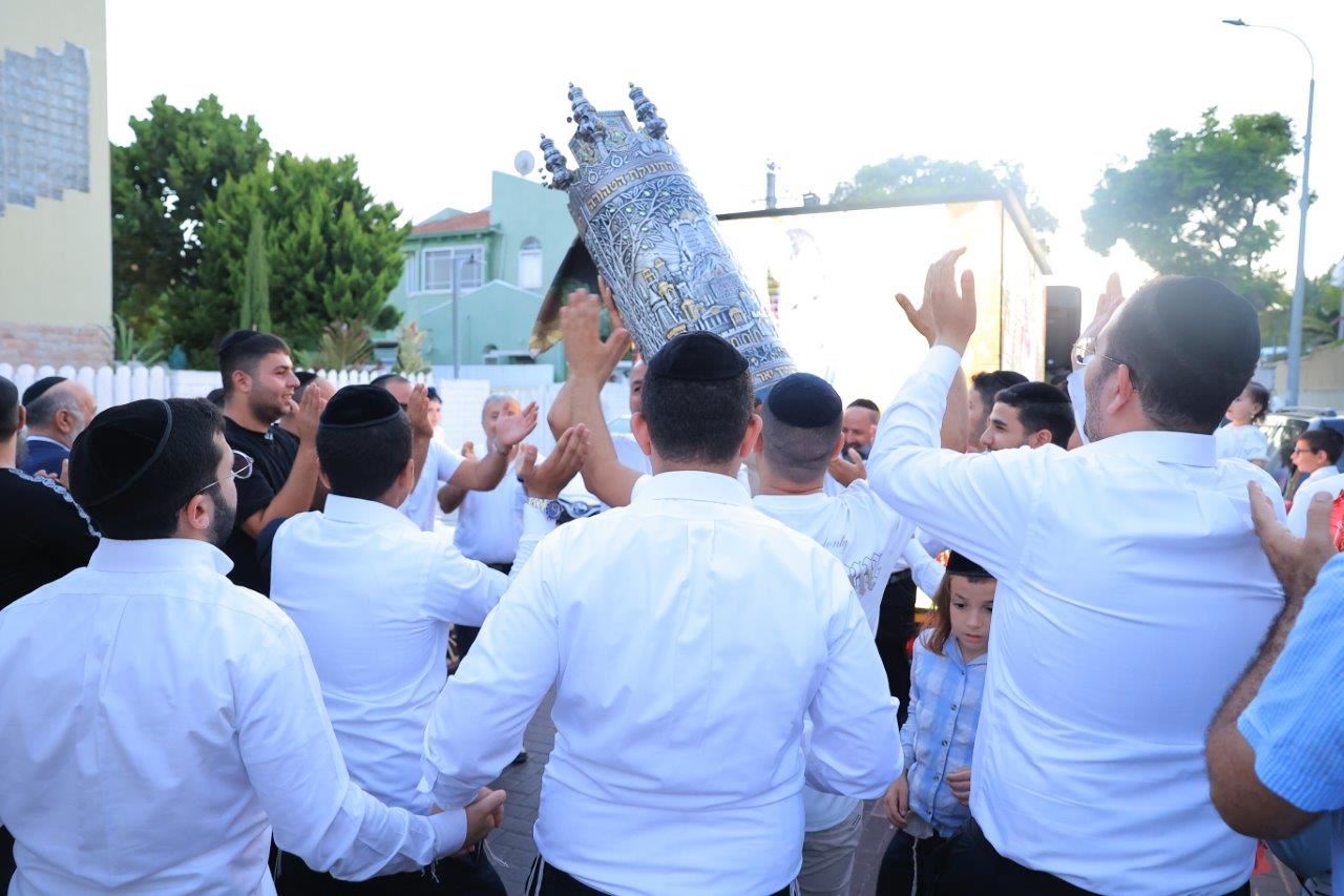 במעמד הרה"צ החיד"א אברג'ל שליט"א: הכנסת ספר תורה לזכרה של התינוקת ליה כהן ע"ה בתהלוכה ברחובה של עיר לבית הכנסת "עבודת ה'" ברובע ט'