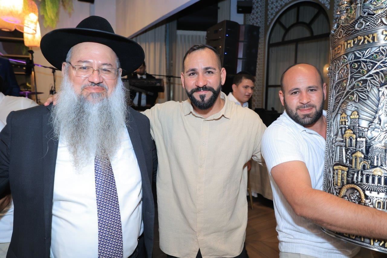 לאחר מכן הגיע ידיד המשפחה הרה"צ החיד"א אברג'ל שליט"א שישב לצידו של ידידו הגר"ש כהן שליט"א, ובירך את בעלי המצוה תוך כדי שרבים מהאורחים נגשו לקבל את ברכתו. הרבנים הזכירו את המצוה הגדול של מצות כתיבת ספר התורה ועוד בפרט "דבר בעיתו מה טוב" שעומדים אנו סמוך ונראה לחג מתן תורה ובירכו את כל הקהל שיזכו לקבל את התורה מתוך שמחה שתשפיע עליהם לכל השנה כולה.