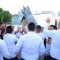 מחוץ לבית המתינו אורחים רבים שמיד שראו את ספר התורה, זרקו סוכריות לעבר החוגגים והצטרפו לחוגגים, כאשר בראש התהלוכה ליווה רכב תפאורה שהשמיע כל העת שירים שמחים לכבודה של תורה ברחבות רובע ט', כשרבים רוקדים עם ספר התורה תחת אפריון מואר בשלל מנורות צבעוניות, עוברי אורח ושכנים רבים הצטרפו אף הם לקול צלילי השירה והריקודים.