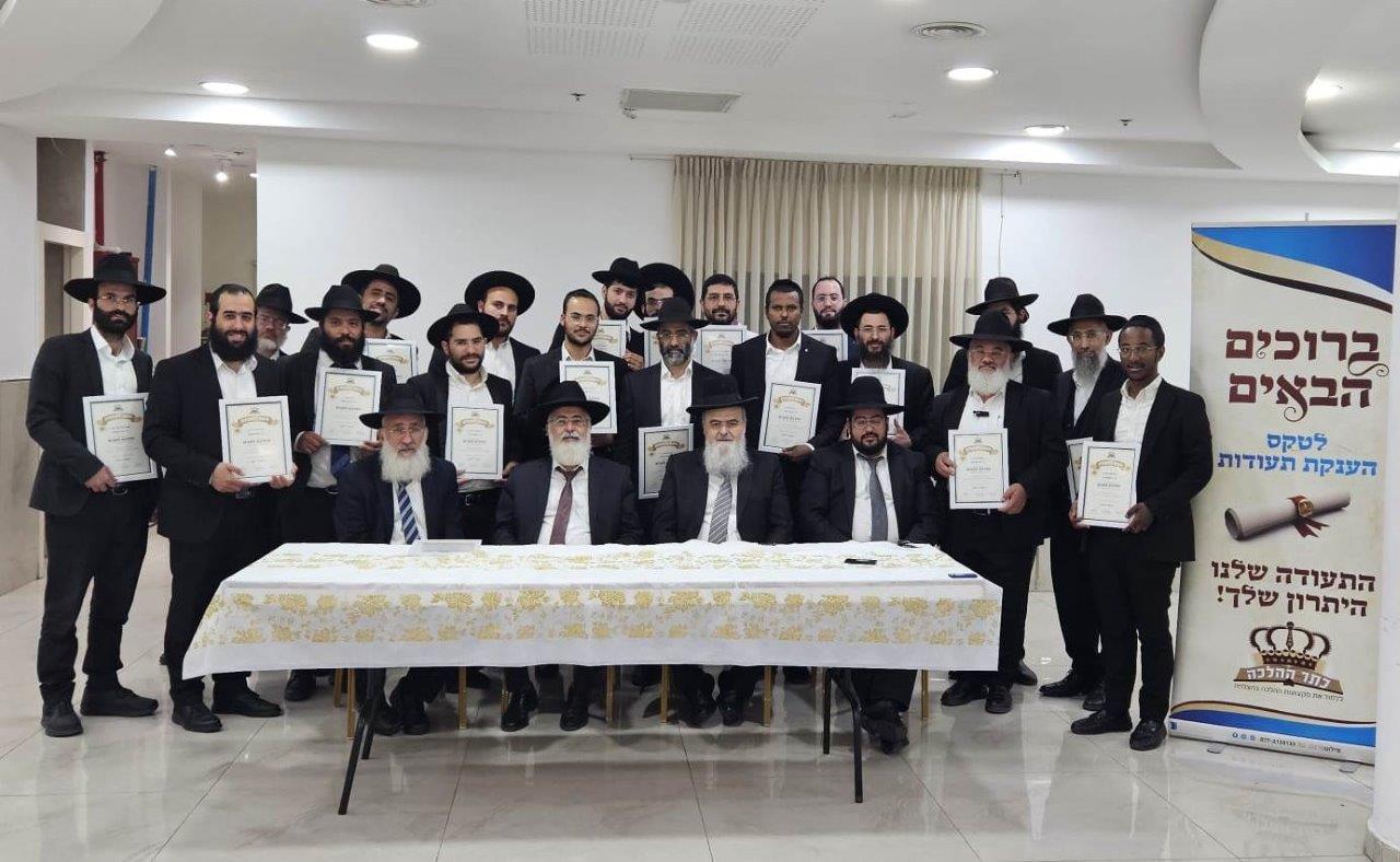 ההלכה" כשהתעודה חתומה ע''י הגאון הרב אהרון אבוטבול שחילק את התעודות ובירכם שיראו ברכה וחייל במעשיי ידיהם.