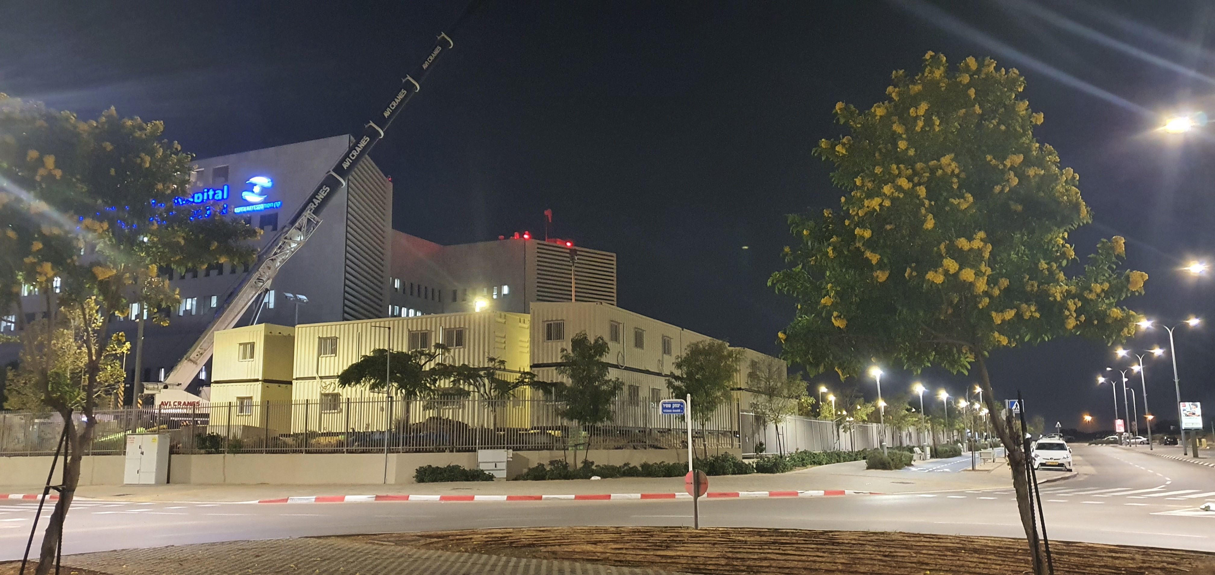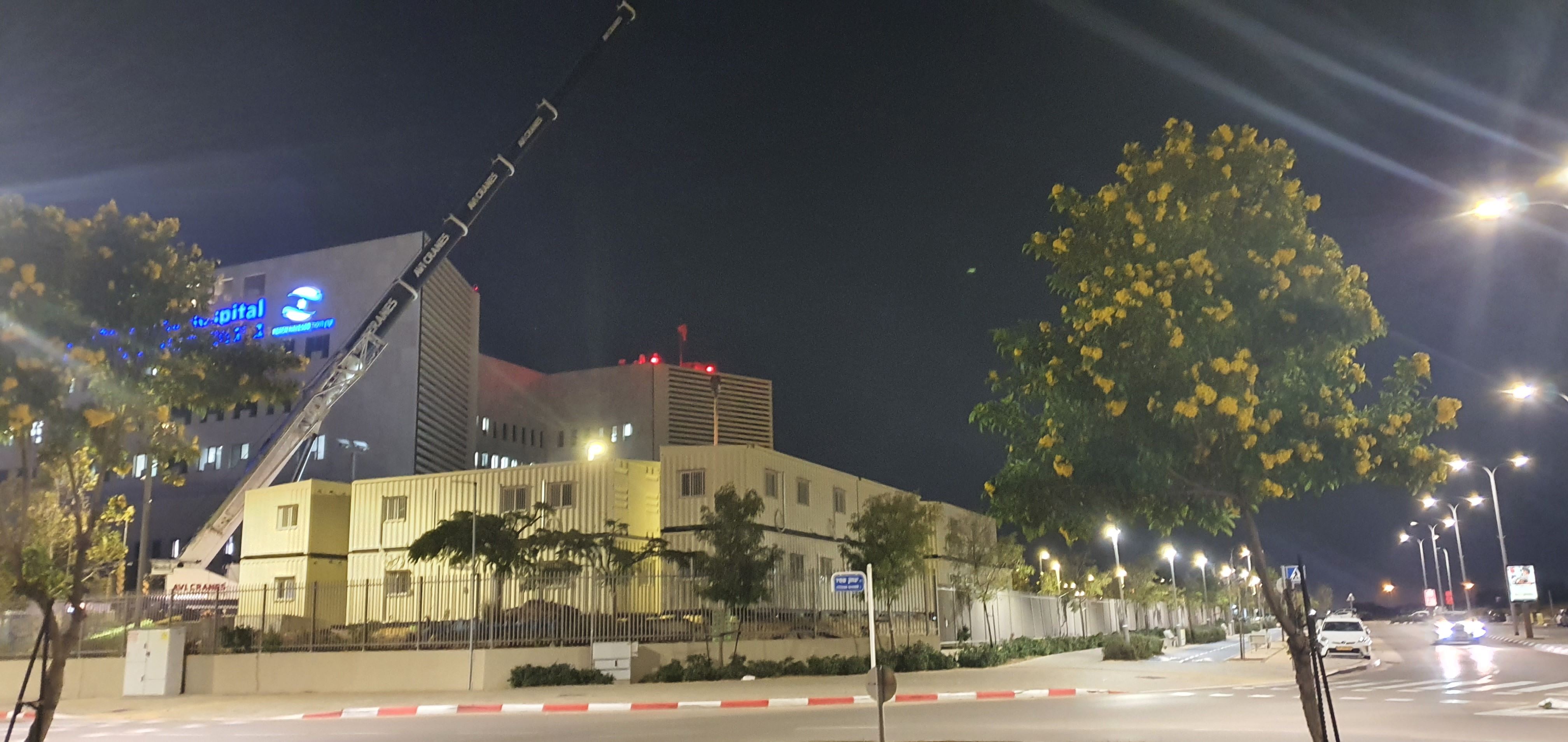 הקמת המגדל החדש בבית החולים 'אסותא' מתקדמת * הלילה נבנו תוך שעות מבני ההנהלה, זאת לאחר שהוחלט על הריסת מבנה ההנהלה הנוכחי