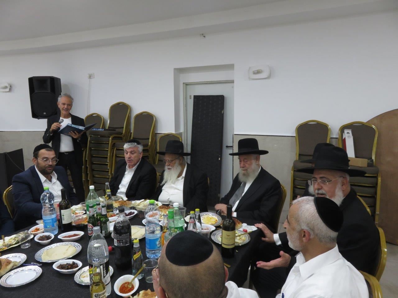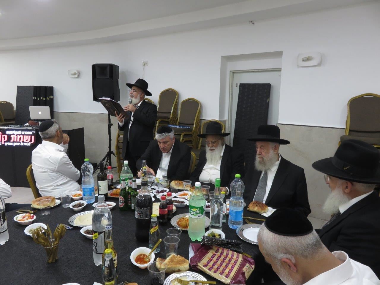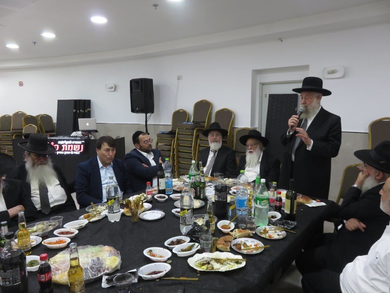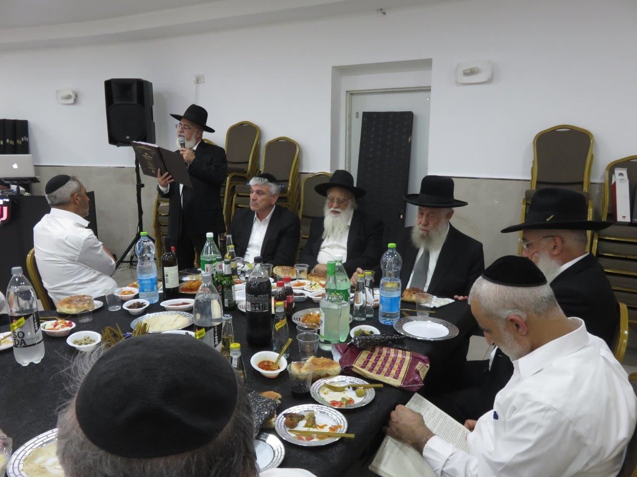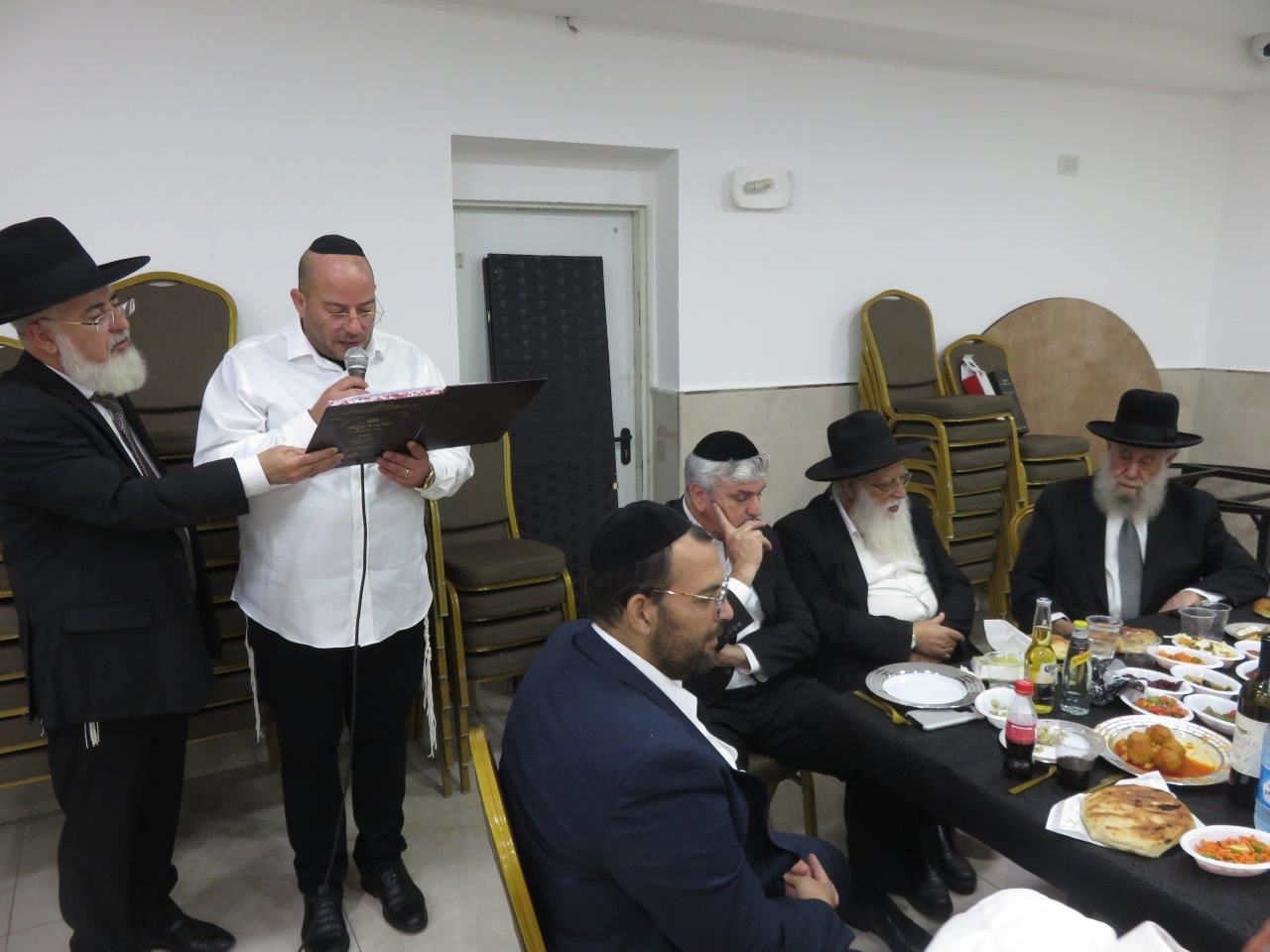 הציבור היסב לסעודת מצוה כיד המלך, כשבמהלכה נשאו דברי תורה וההערכה לכבודה של תורה. בסעודת המצוה הסיבו אורחים רבי ביניהם: הרה"ג ר' חיים קלמנוביץ חבר לשכת הרה"ר רב שכונה ורב מחלקת עירובין, הרה"ג ר' מאיר כהן רב בית הכנסת הריב"ז ומחבר הספרים "אוצר פסקי הלכה", הרה"ג ר' מרדכי מלכה רב המושבים, הרב חיים בן- חמו מרבני המועצה הדתית, ר' אילן אדרי מיסד בית הכנסת המפואר "מעם לועז" במרינה, ר' אבי אמסלם מ"מ ראש העיר, הרב חיים אמסילי חבר מועצת העיר, וממונה מחלקת חינוך חרדי, עו"ד יאיר לחן מבכירי הליכוד ועוד.