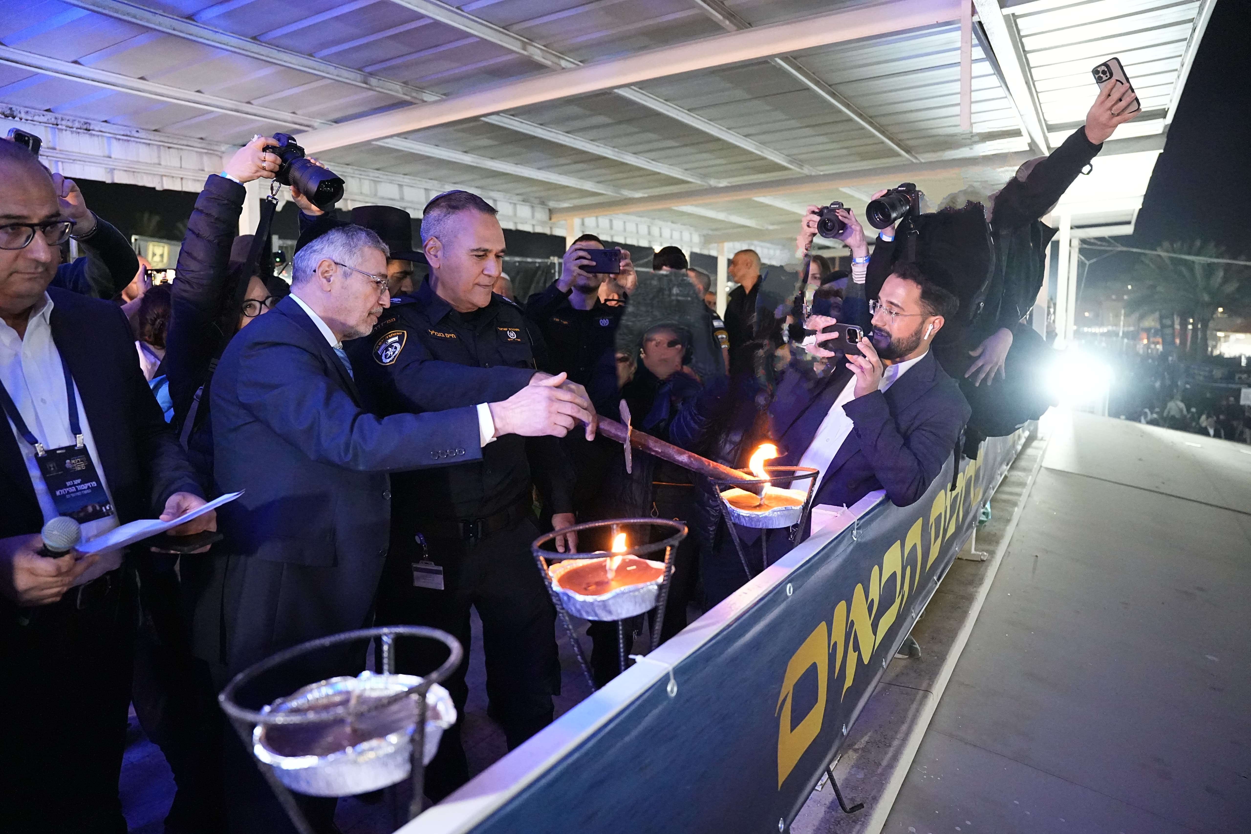 את הנר לזכר השוטרים הי"ד הדליקה השוטרת הודיה הרוש, לזכר בעלה רס"ר אליהו מיכאל הרוש הי"ד, שהיה מהראשונים שהסתערו על המחבלים בשדרות ב-7 באוקטובר, ונפל בקרב על תחנת המשטרה בעיר