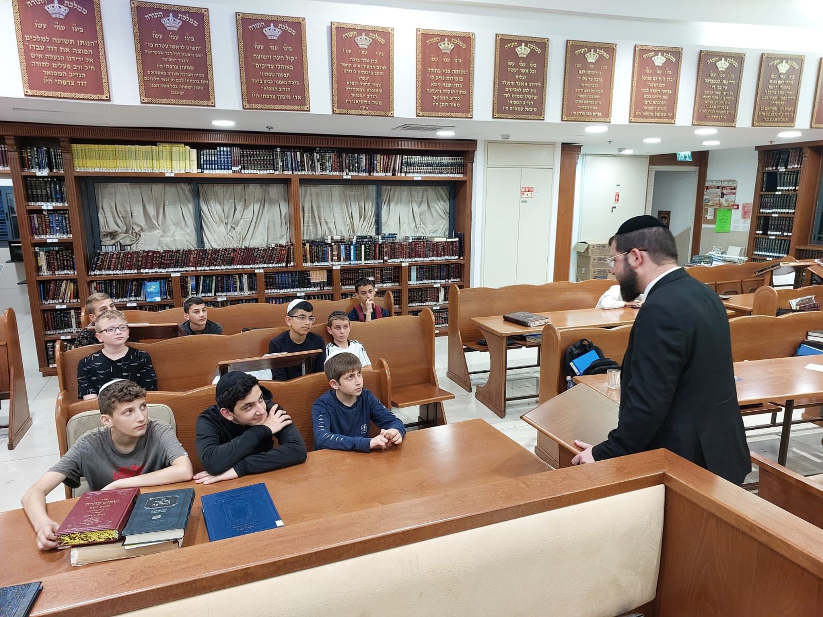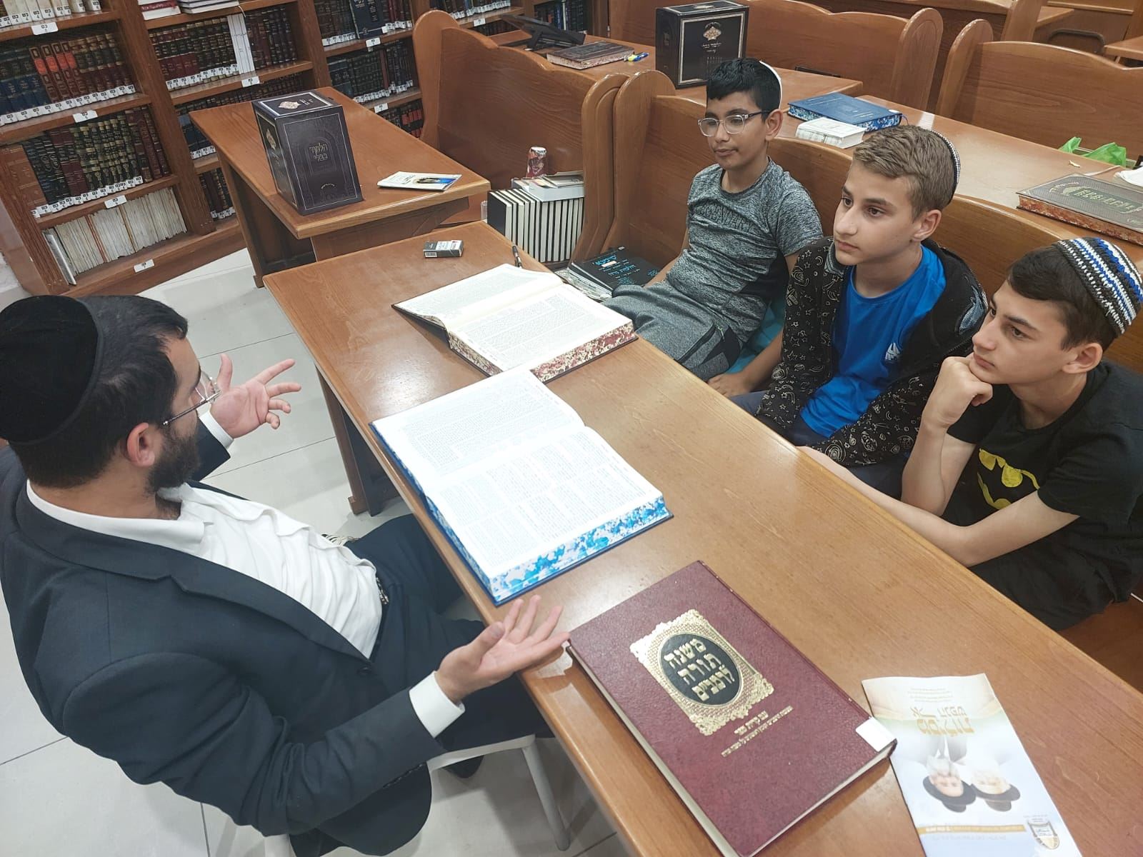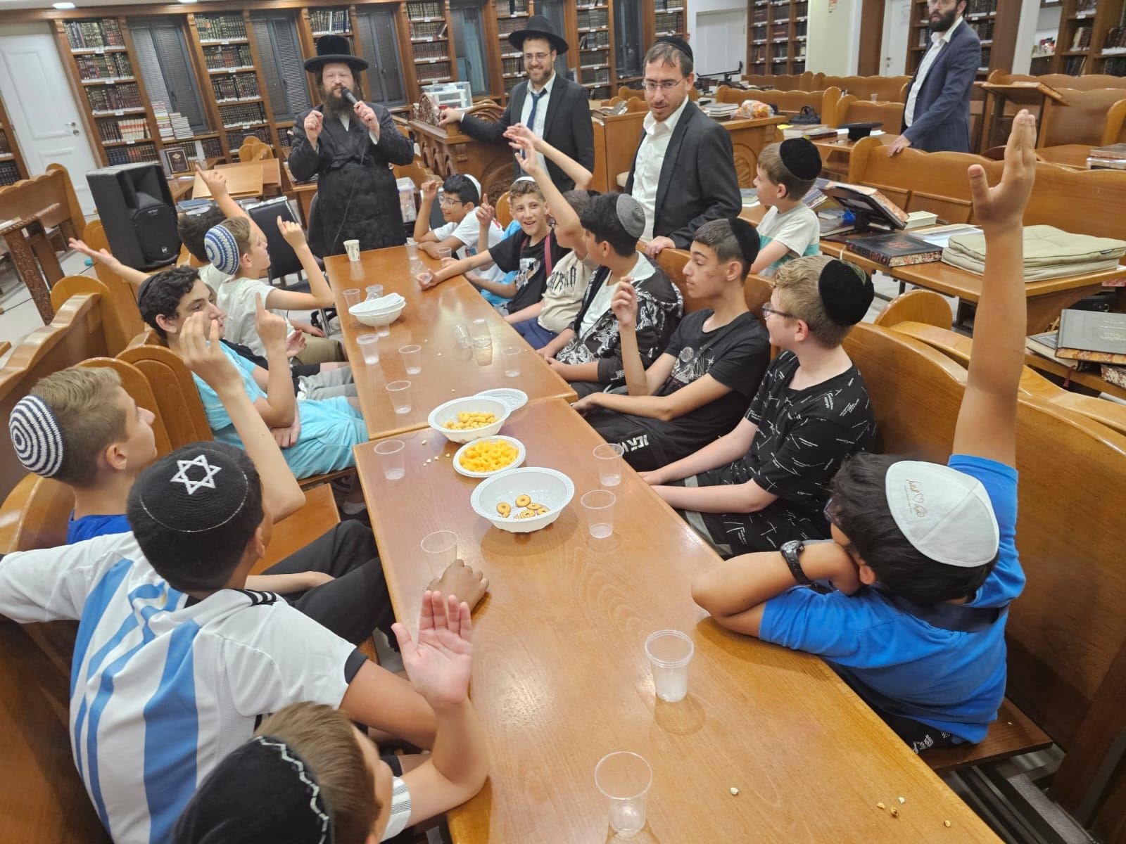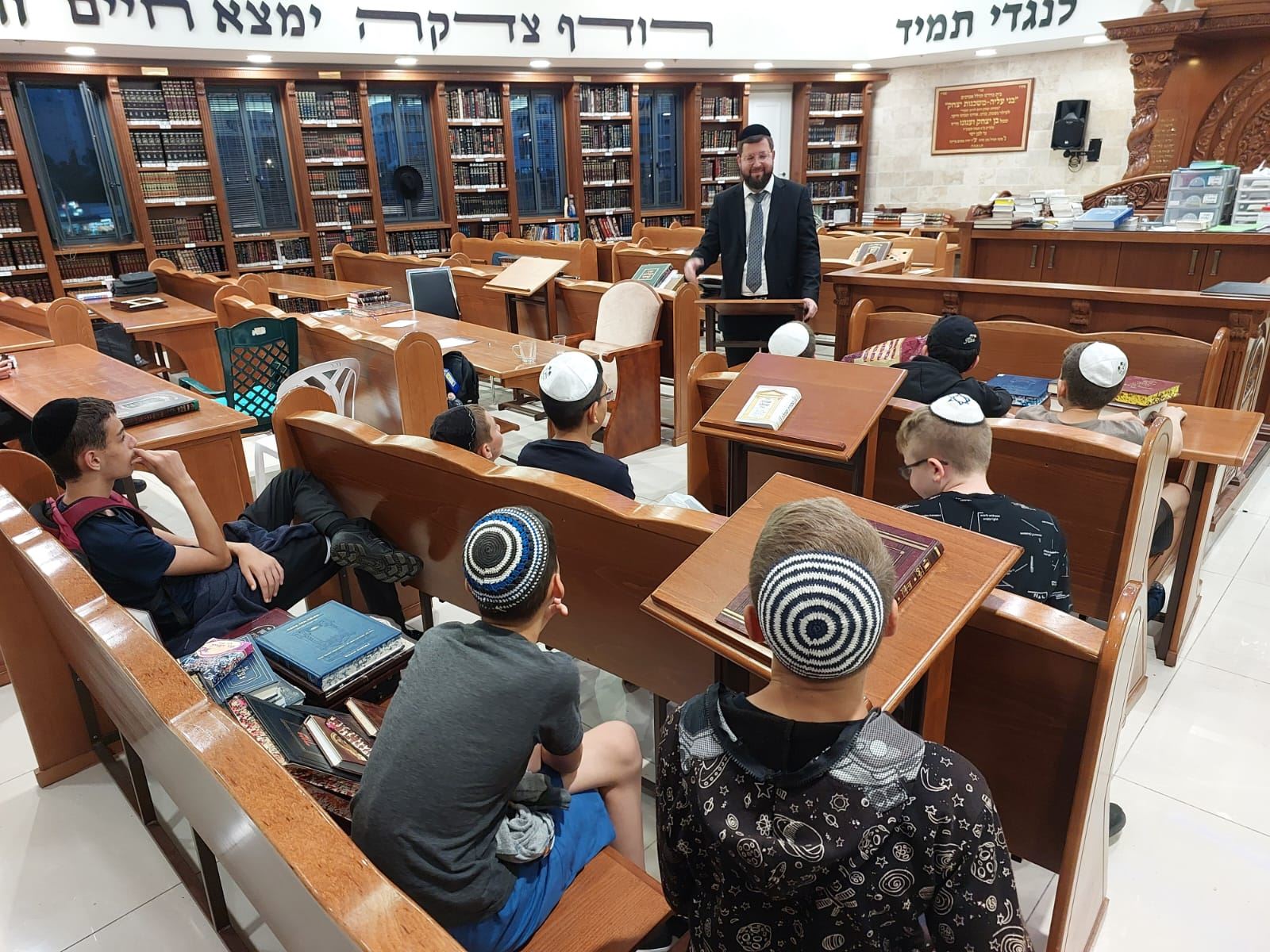 הגה"צ רבי יעקב לייפר שליט"א, ראש ישיבת פיטסבורג, נשא דברים במסיבת הסיום של תלמידי חטיבת הביניים ב'שובו'. התלמידים לומדים אחת לשבוע עם אברכים בבית המדרש של הרב מאיר אבוחצירא שליט"א