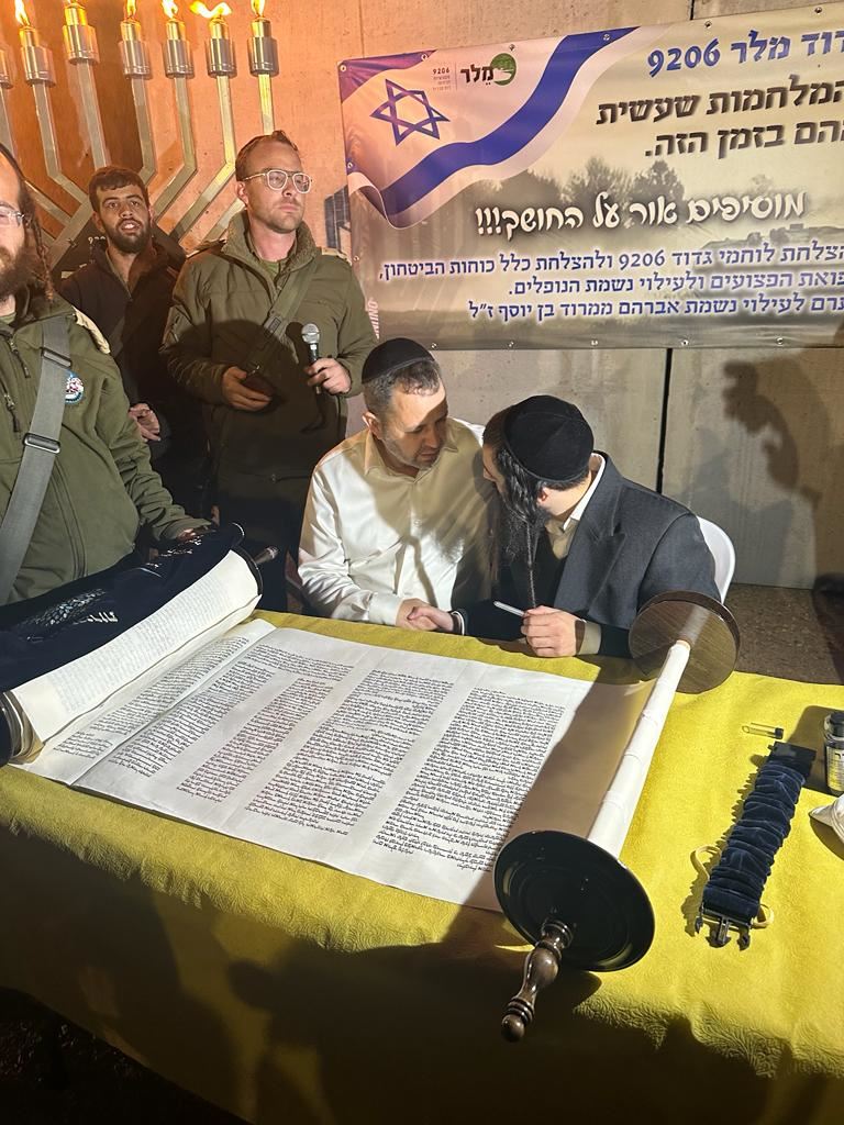 מעמד הכנסת ספר תורה והדלקת הנר השמיני עם לוחמי צה"ל. צפו בשמחה