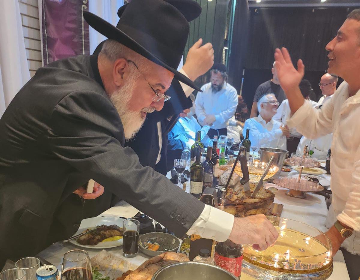 ד"ר יחיאל לסרי ראש העיר, התקבל בחביבות מיוחדת תוך כדי שהגר"מ אבוחצירא מבקש שישב לצידו.