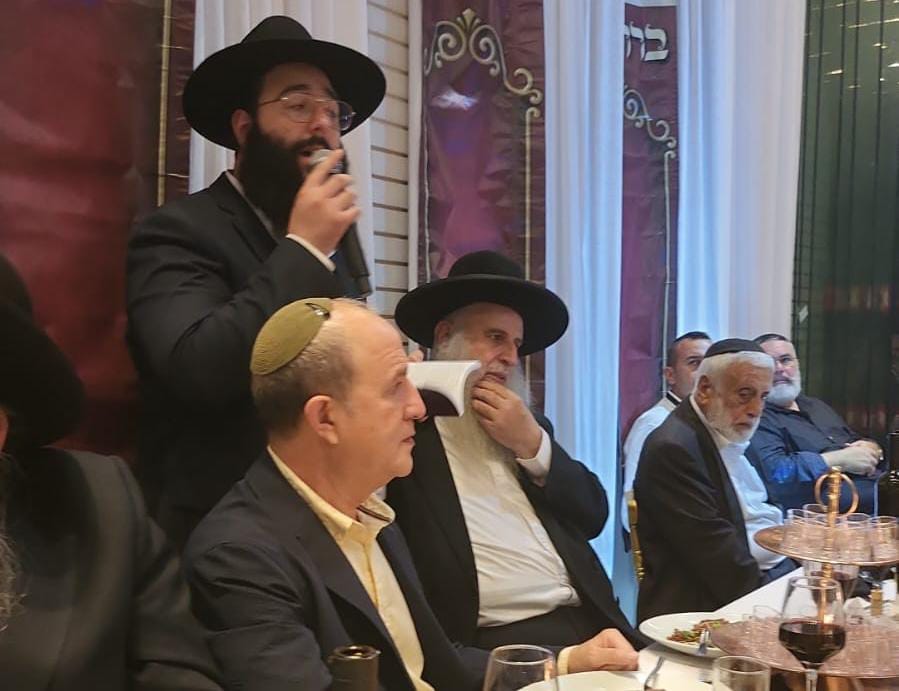 את ראש העיר קידם במילים: "כבוד מעלת אהובינו ויקירנו, אוהב תורה ולומדיה, אהוב למעלה ונחמד למטה, מוקיר ורחים רבנן, חיכו ממתקים וכולו מחמדים, נופך ספיר ויהלום, ראש עירנו היקר, הנפלא והמופלא ד"ר יחיאל לסרי ה' ישמרהו ויחיהו, ירום כוכב מערכתו ויעלה מעלה מעלה תמיד, בריא אולם, בריא מזליה, ימים על ימי מלך בהצלחות תמיד, כל הימים כל הזמנים וכל השנים".