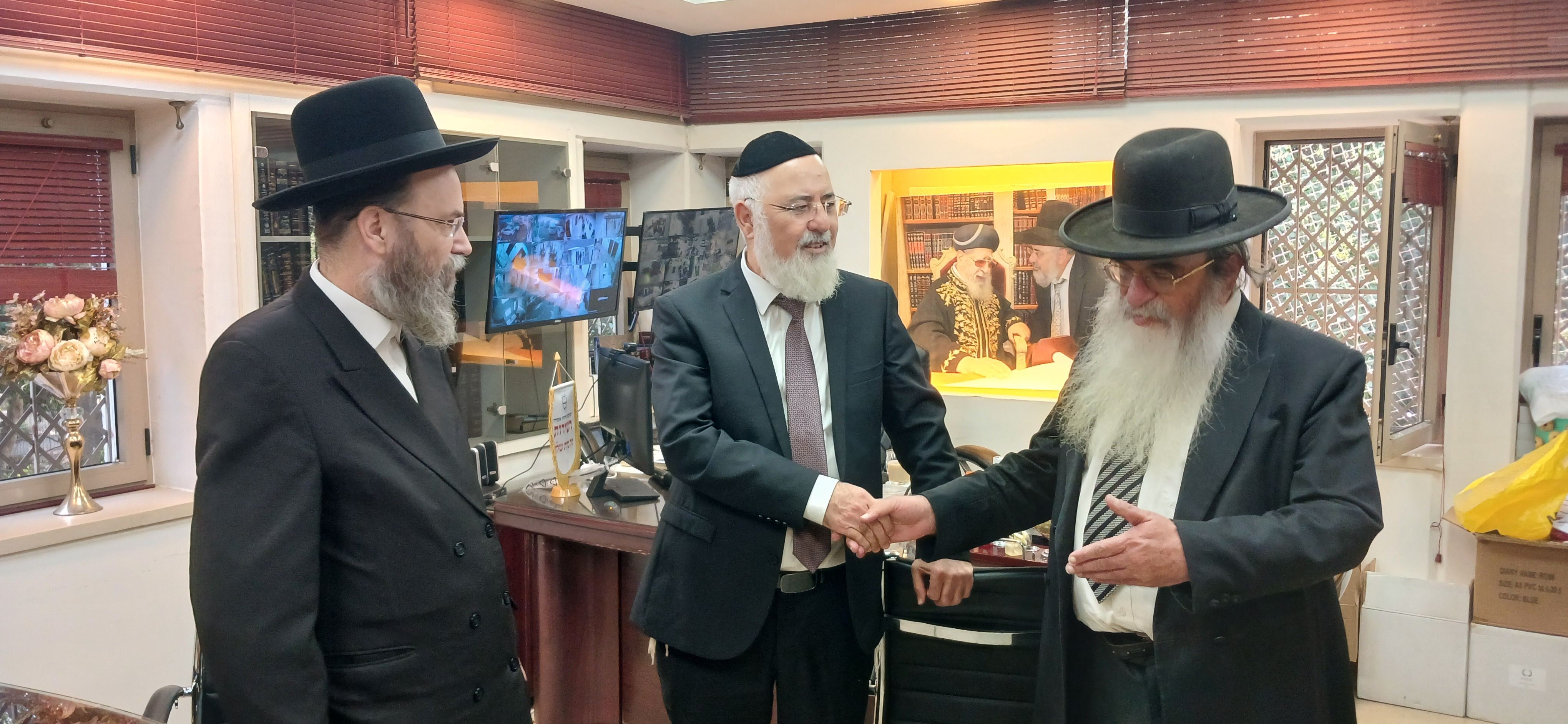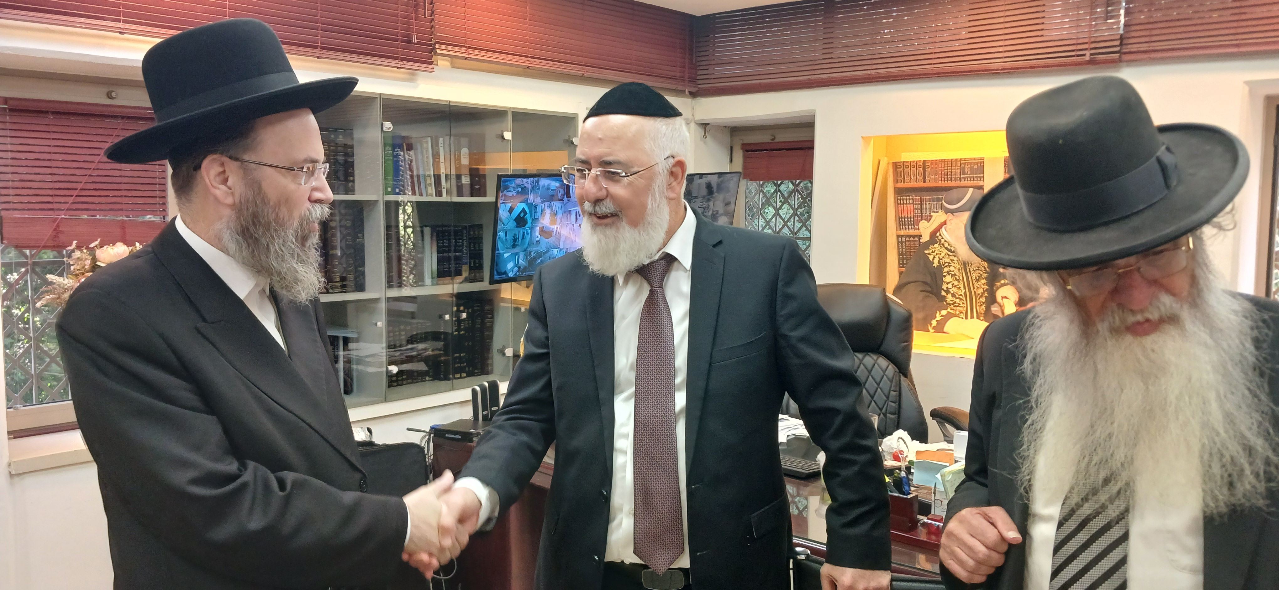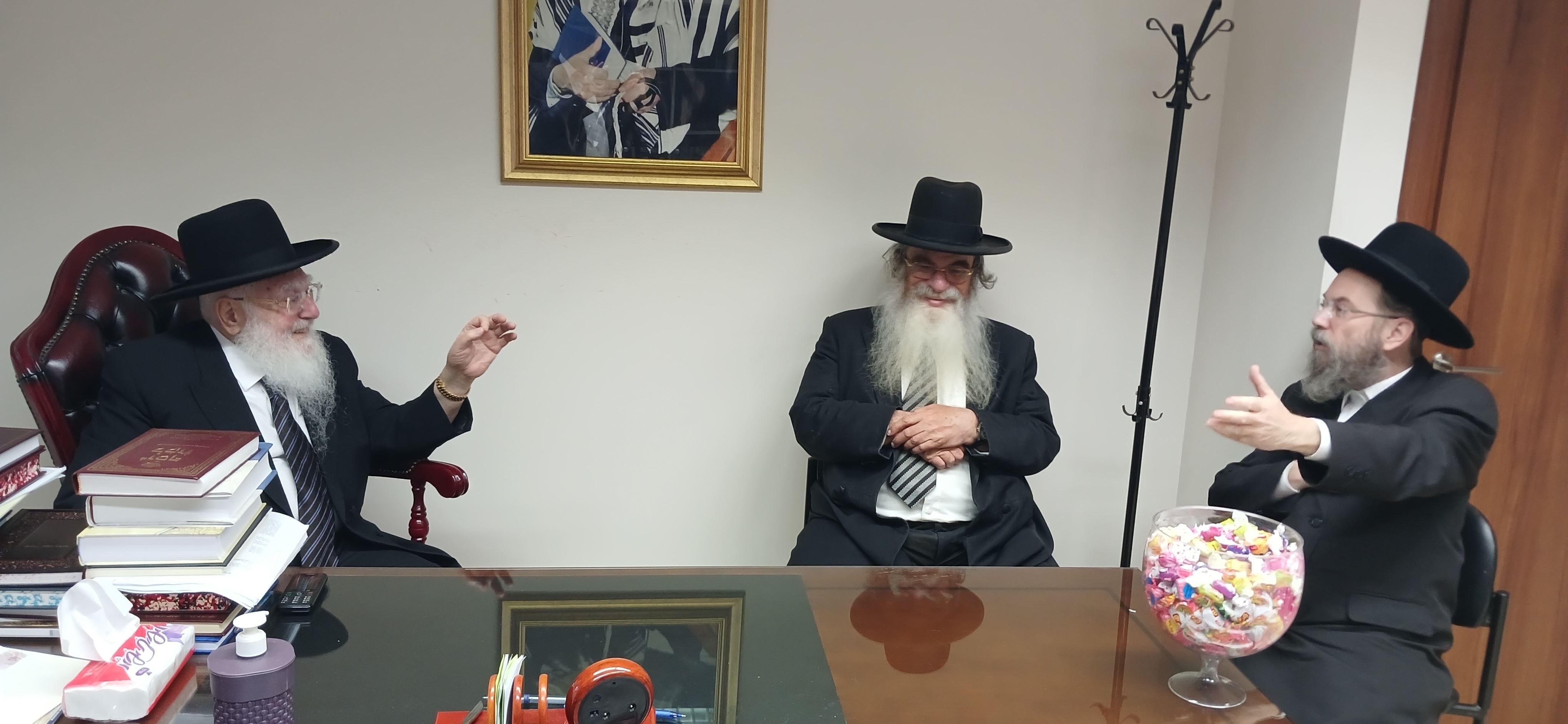 בהמשך לביקור בנושא העירובין התקבל האורח החשוב הרב פנחס שדרוביצקי בלשכתו של הרב הראשי והמרא דאתרא הגה"צ רבי חיים פינטו שליט"א לשם ליבון בעיות הלכתיות שונות בנושא הכשרות בעיר לוס אנג'לס העומדות תחת אחריותו של הרב שדרוביצקי.