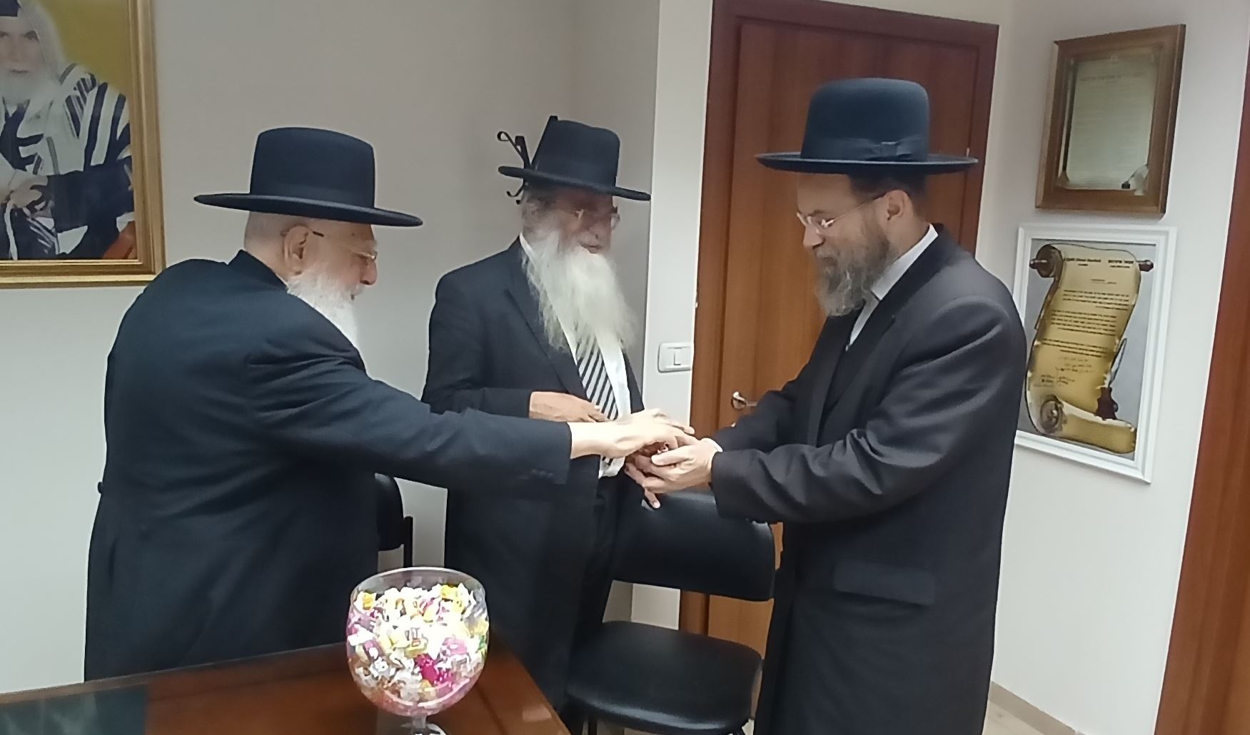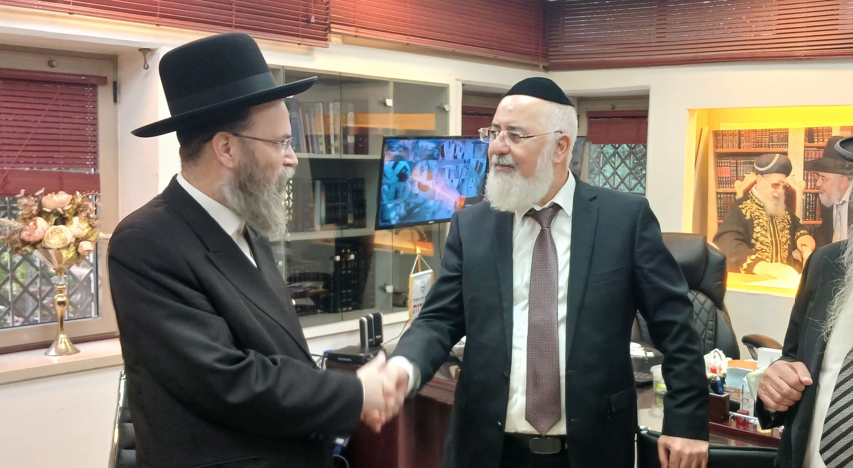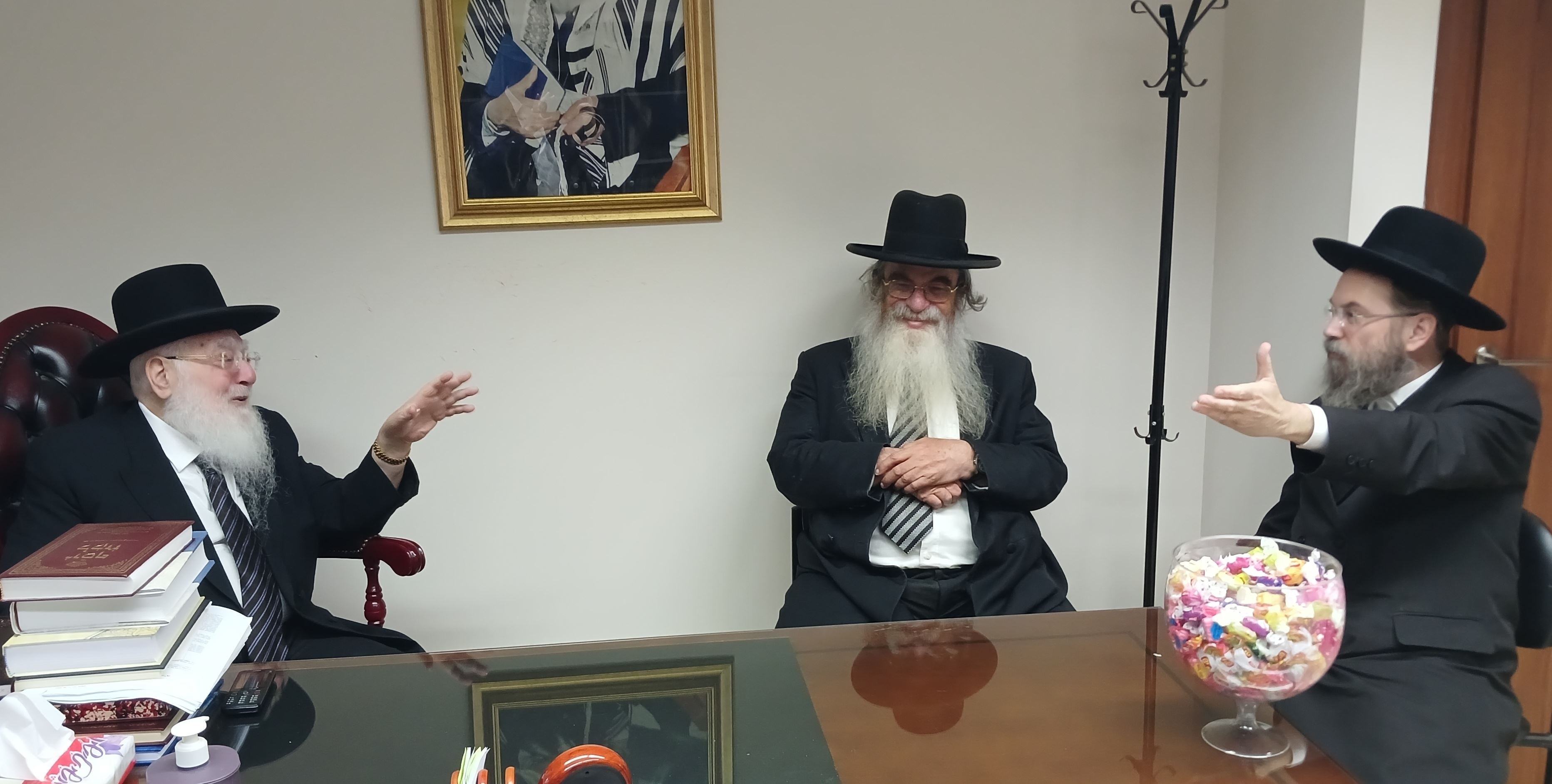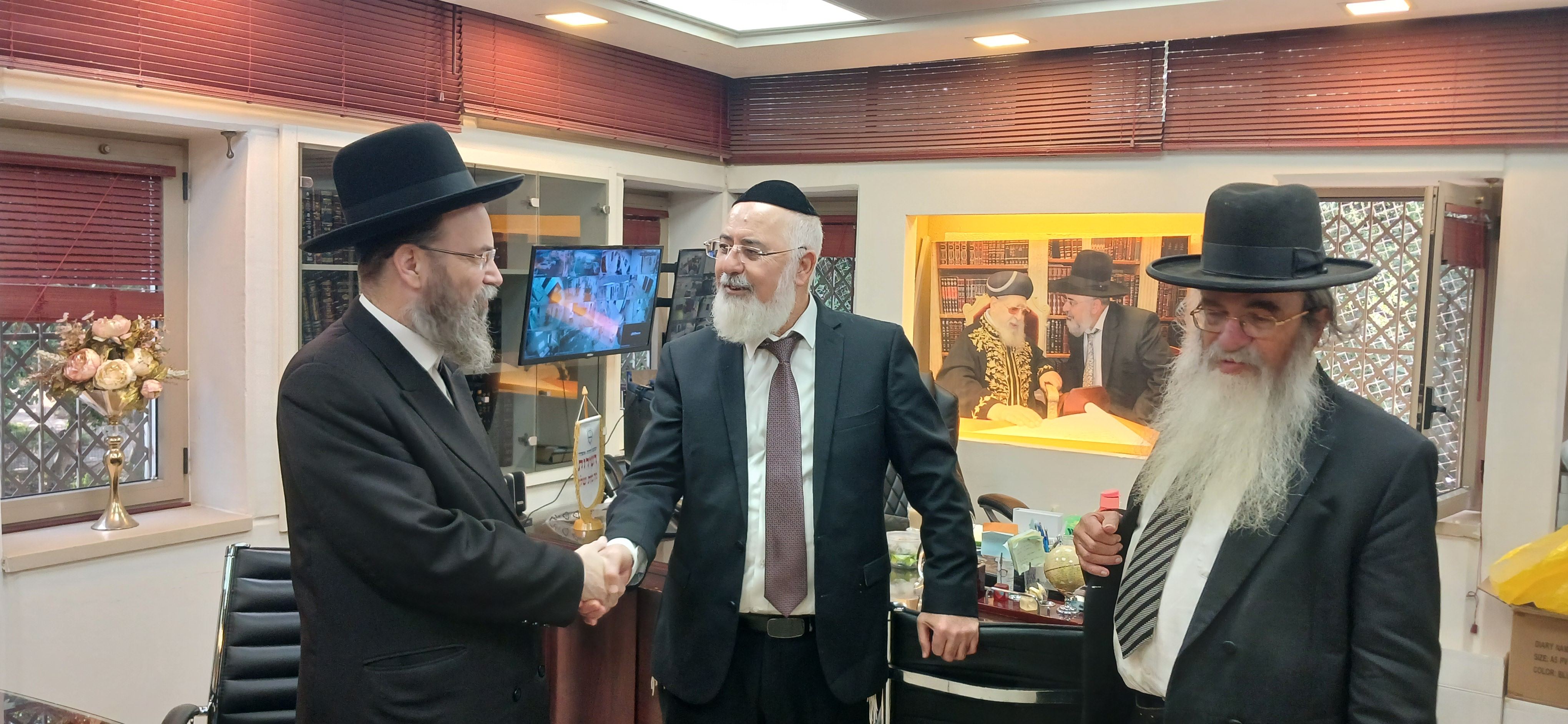 בהמשך לביקור בנושא העירובין התקבל האורח החשוב הרב פנחס שדרוביצקי בלשכתו של הרב הראשי והמרא דאתרא הגה"צ רבי חיים פינטו שליט"א לשם ליבון בעיות הלכתיות שונות בנושא הכשרות בעיר לוס אנג'לס העומדות תחת אחריותו של הרב שדרוביצקי.