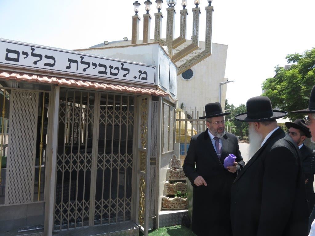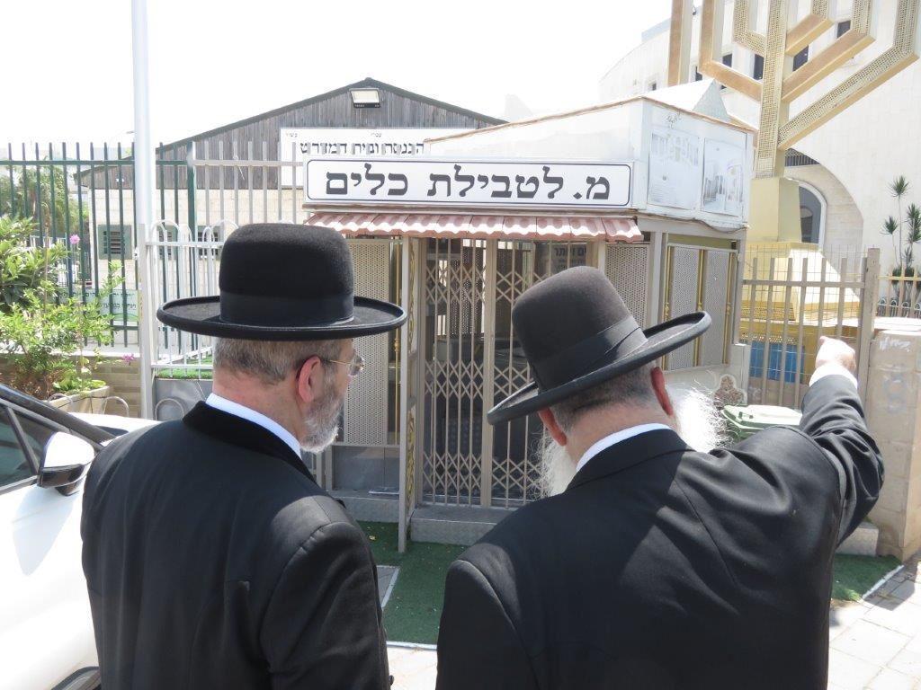 עם הגיעו לבנין המוסדות, קידם את פניו הגר"מ אבוחצירא והביע את התפעלותו מהיופי וההדר שבמקום והתעניין על מקוה לטבילת כלים שהוקם במקום באופן פרטי לשירות התושבים באזור.