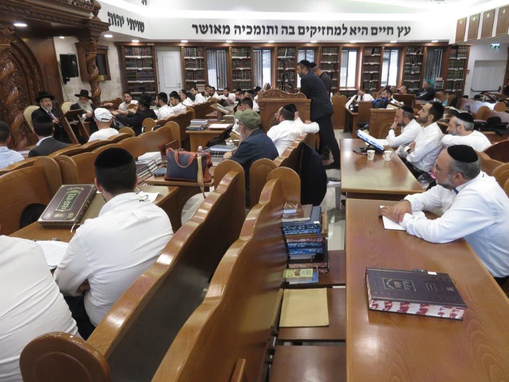 משם המשיך לבנין החדש, שם נכנס לבית הכנסת המפואר ואמר שאכן זה ממש לפאר ולרומם את בית אלוקינו בהידור רב, שמח לשמוע על הפעילות במקום שמעבר לכולל האברכים השוקדים על לימודם יום שלם, מתקיים במקום שיעורי תורה לציבור וכך גם בשבתות.