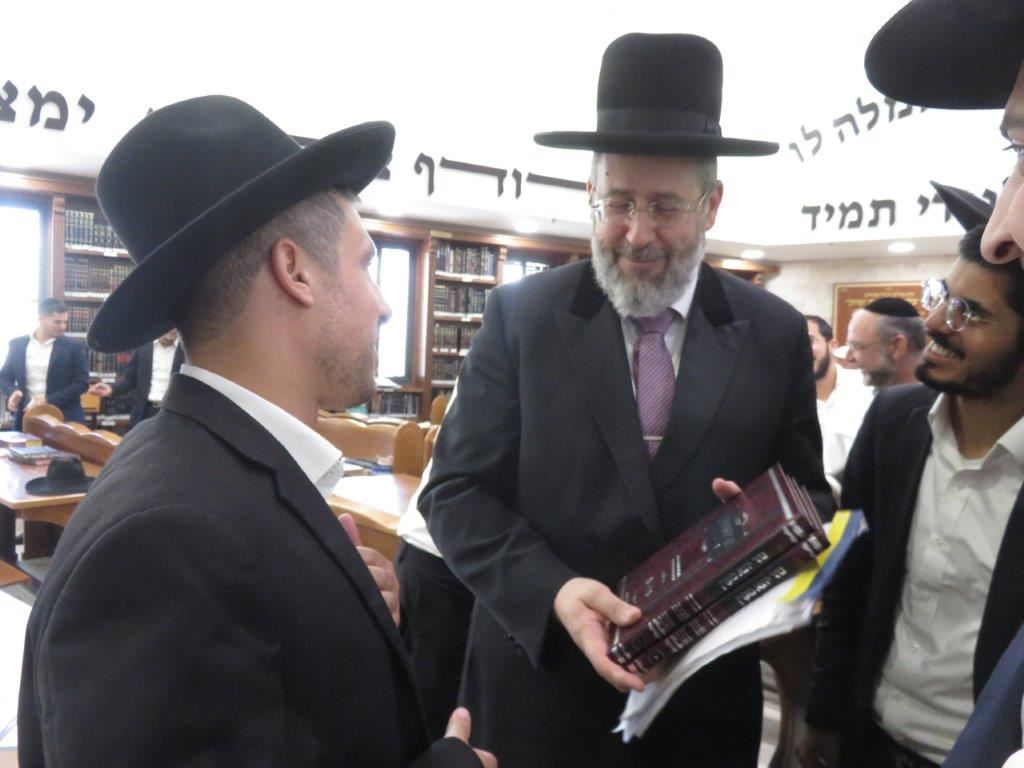 בצאתו ניגש אליו מחשובי האברכים והעניק להרב הראשי את פרי ביכוריו שני ספריו "נהר יוצא מעדן" שכתבה פסקים בהלכה, הגר"ד לאו הודה לו ובירכו שיזכה לכתוב עוד חיבורים רבים בהלכה.