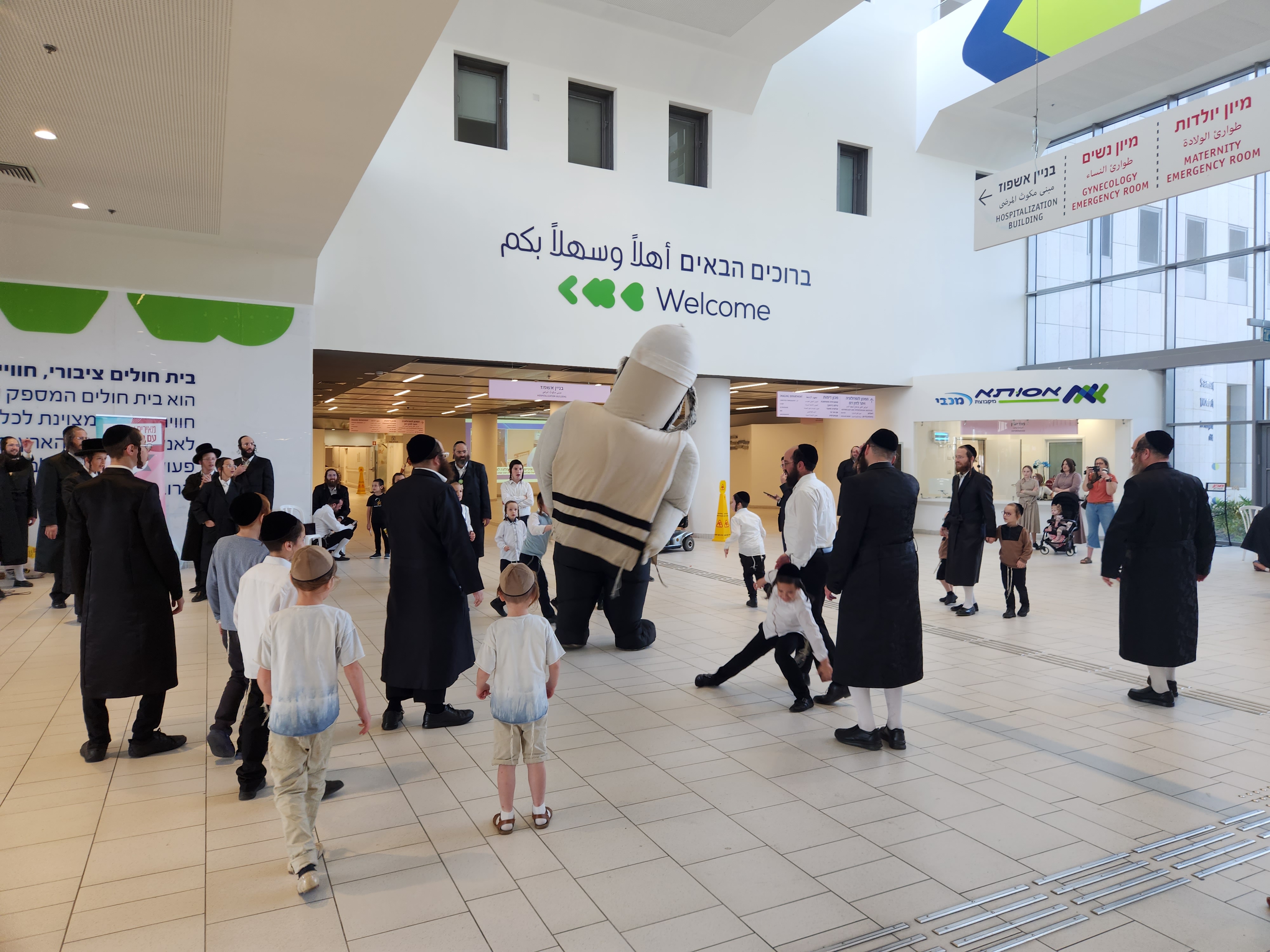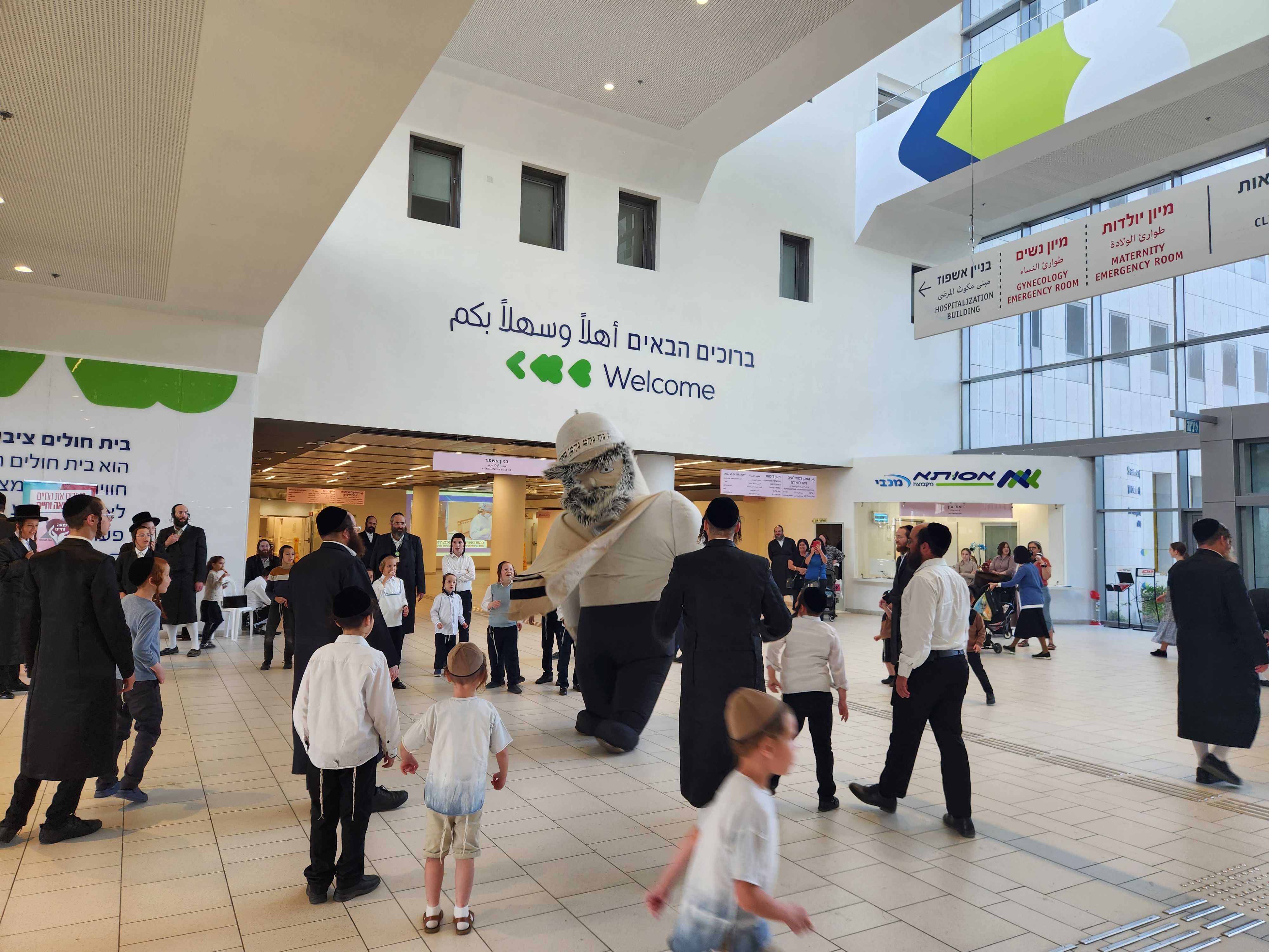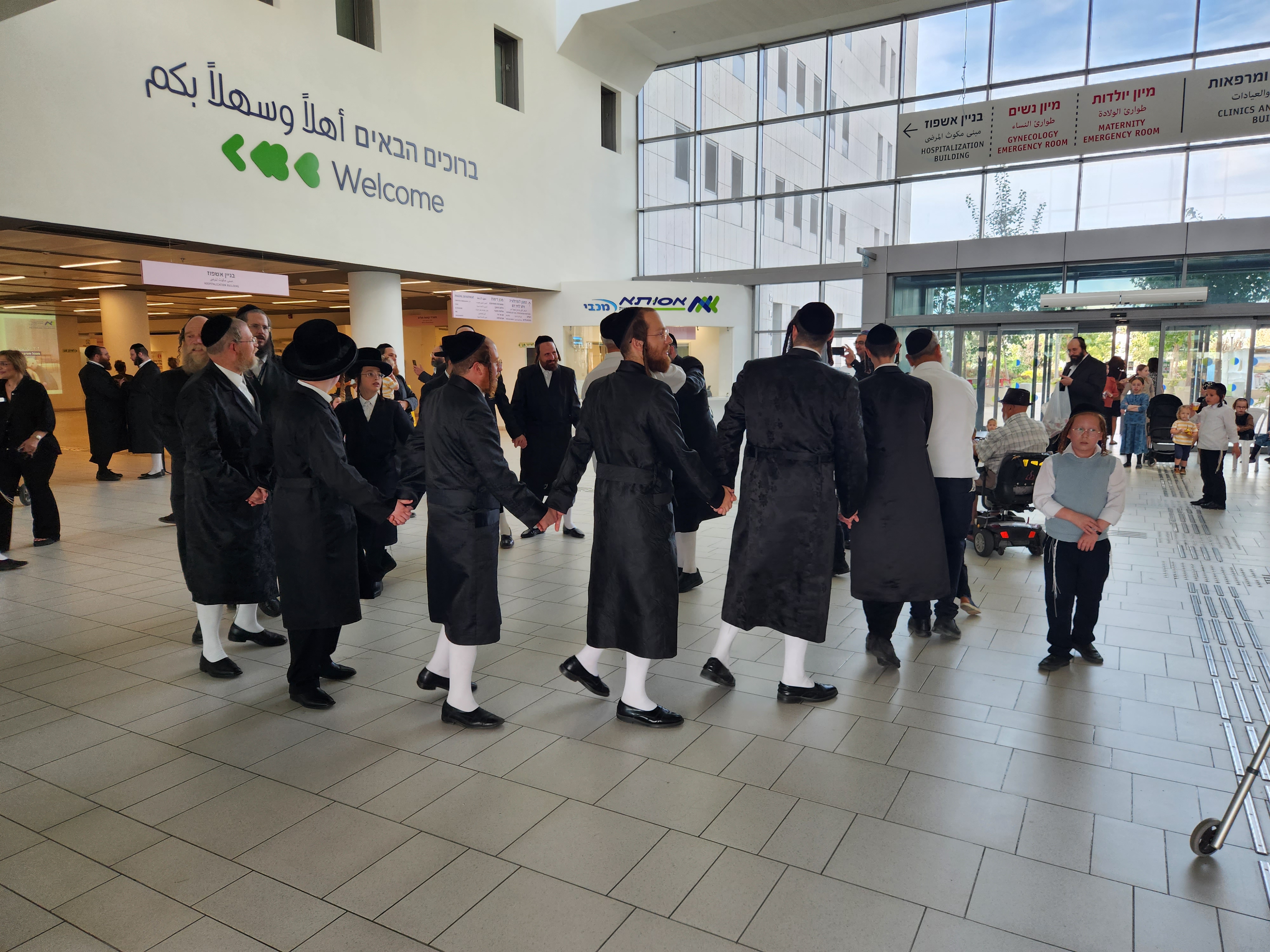 ושמחת בחגך: המאושפזים בבית החולים 'אסותא אשדוד' חוו היום ארוע מרגש, לאחר שמתנדבי הארגונים 'מרפא ושמחה' ו'רפואה וחיים' ויזניץ הפיקו ארוע של שמחת בית השואבה שהתקיים בלובי בית החולים.
