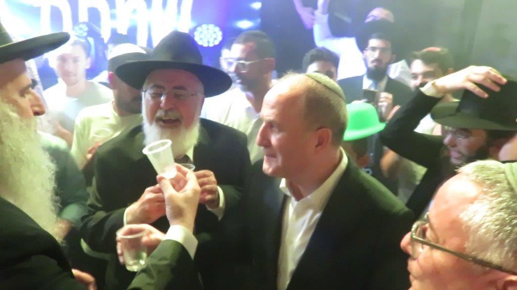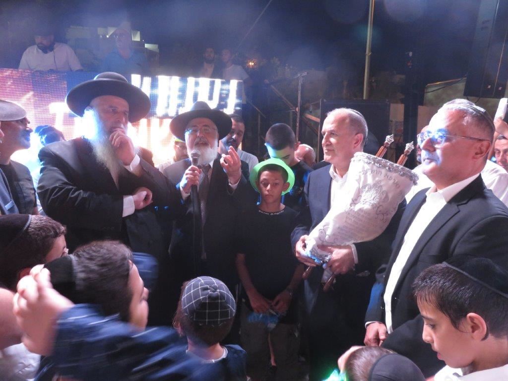 ראש העיר ופמליתו התקבלו בהערכה גדולה. הגר"מ אבוחצירא נשא דברי ברכה קצרים מחשיבותו של יום שמחת תורה.