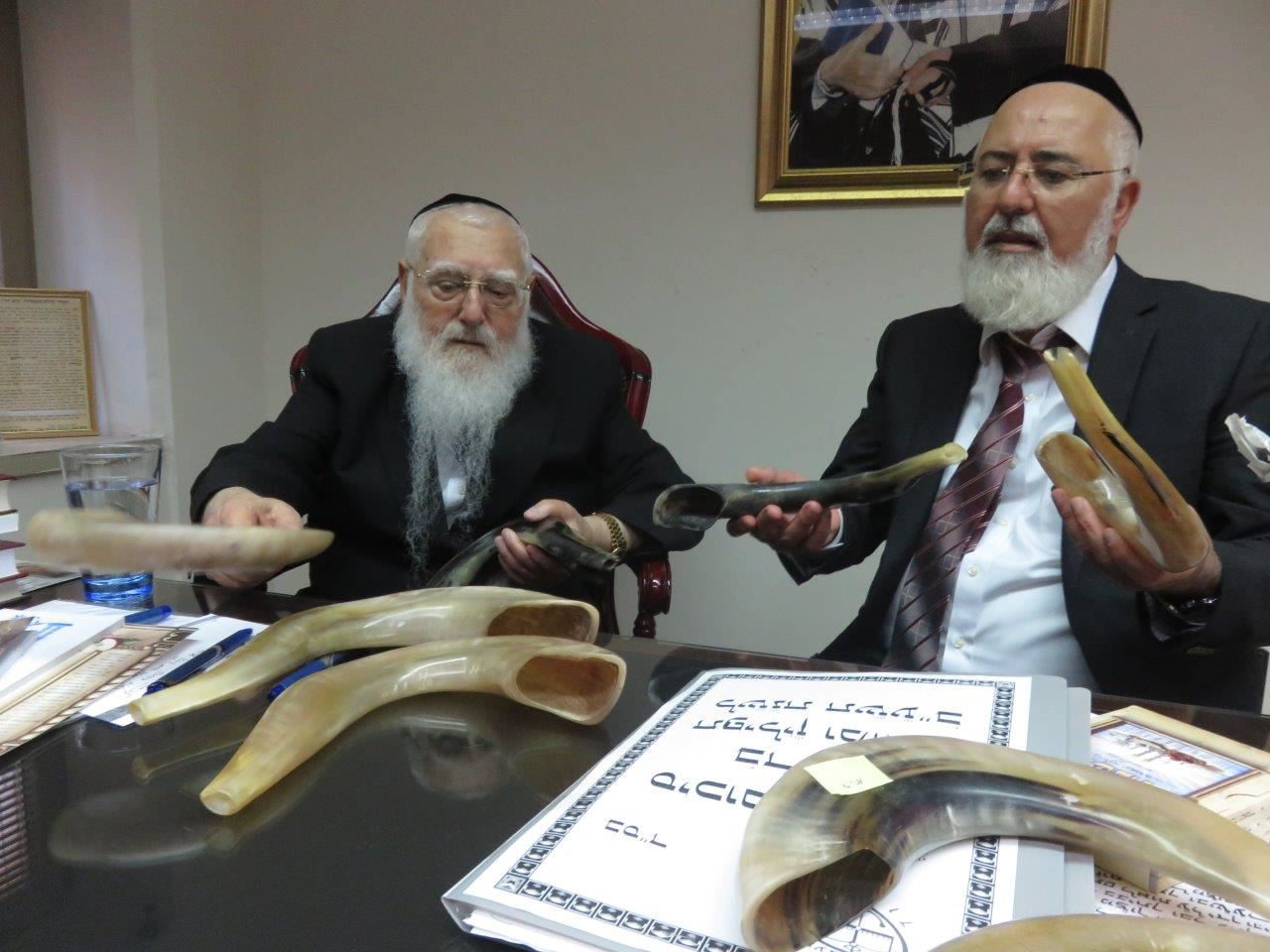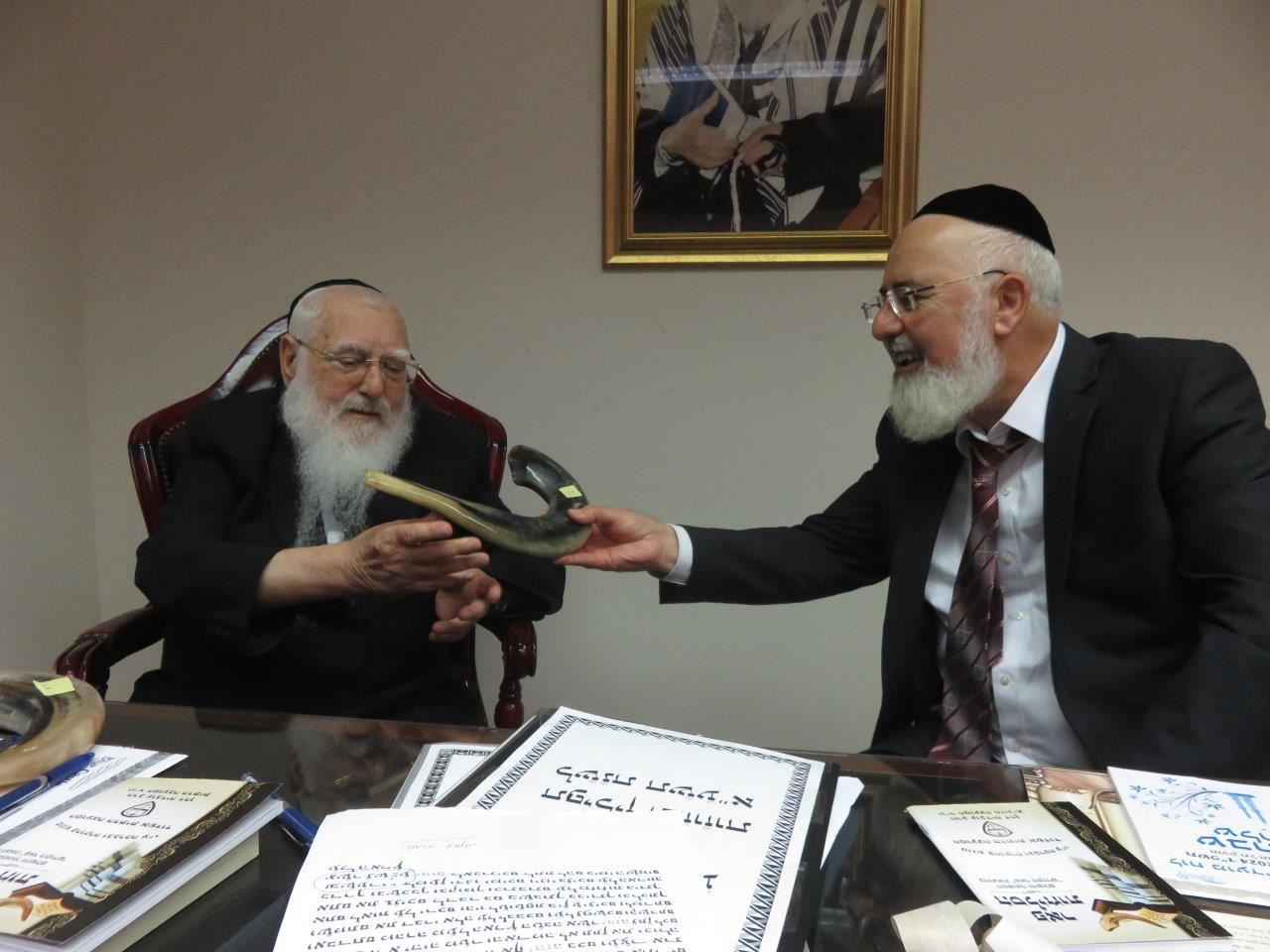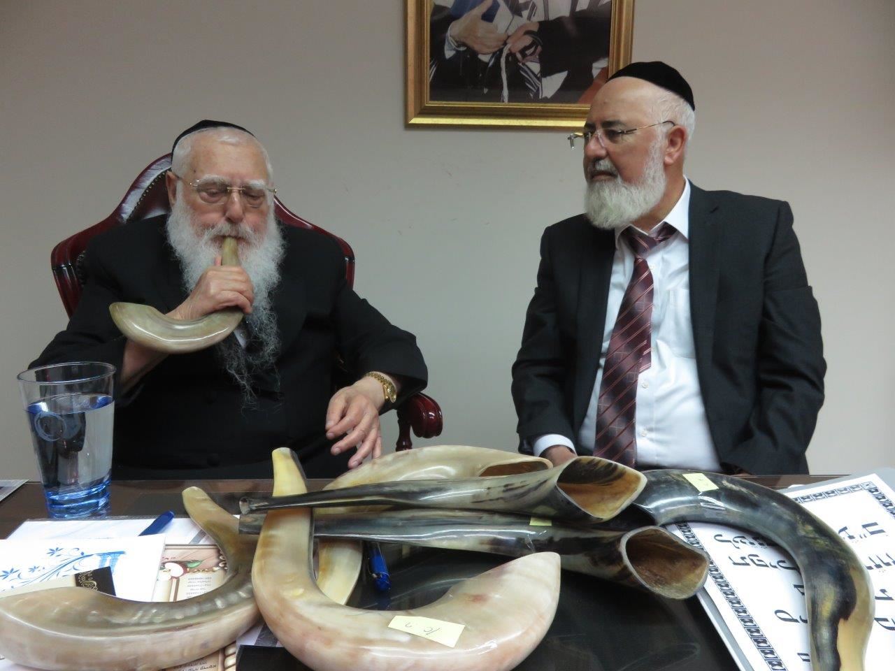 הרב עובדיה דהן יו"ר המועצה הדתית נכנס למרא דאתרא הגה"צ רבי חיים שמעון פינטו שליט"א והציג בפניו שופרות מהודרים שהגיעו ממרוקו.