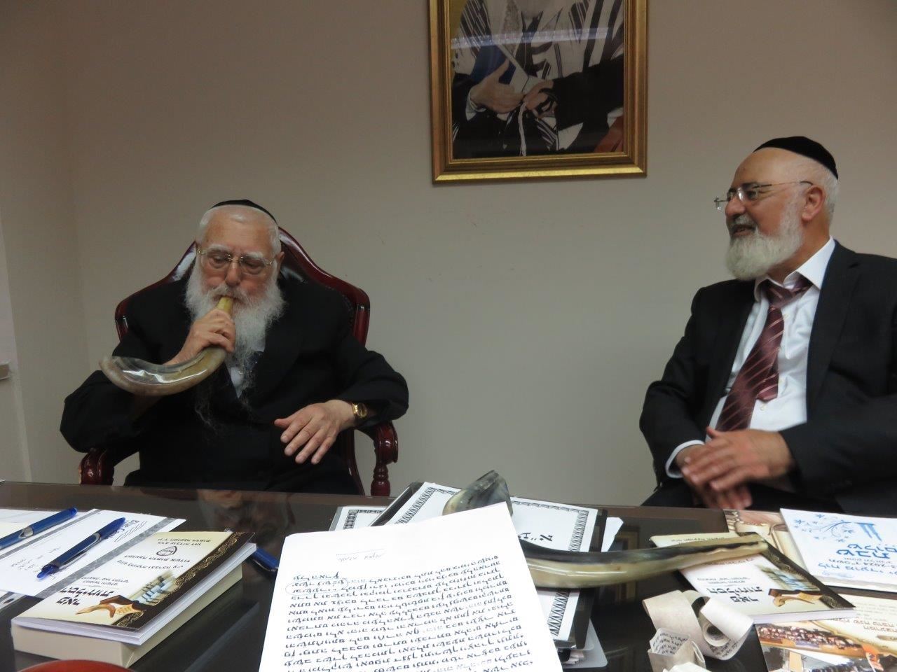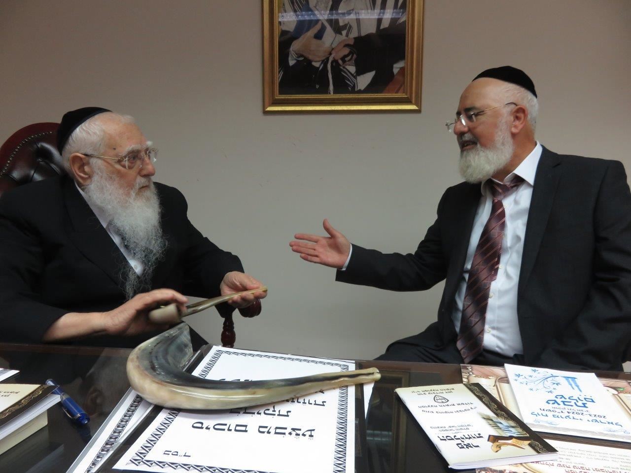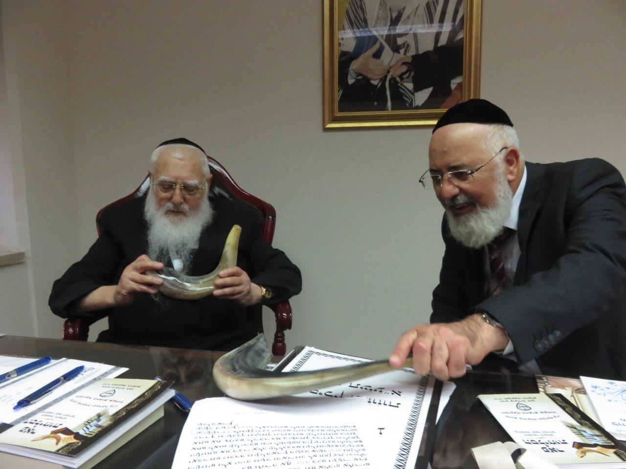 הרב עובדיה דהן יו"ר המועצה הדתית נכנס למרא דאתרא הגה"צ רבי חיים שמעון פינטו שליט"א והציג בפניו שופרות מהודרים שהגיעו ממרוקו.