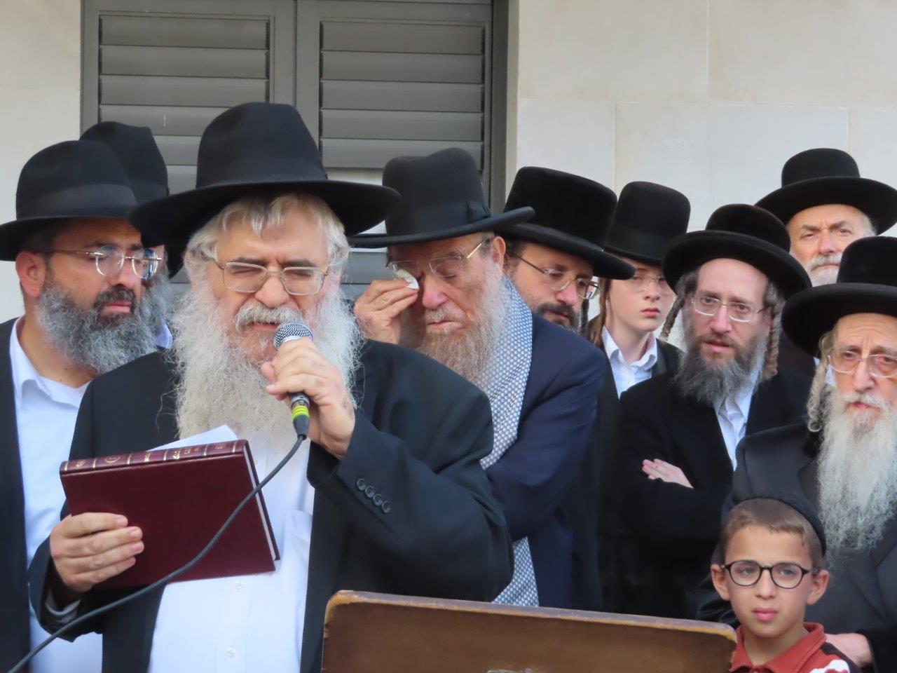 כ"ק האדמו"ר ממעליץ פתח בדברי הספד והתעוררות והזכיר את ההלכה שאין מספידים בחודש ניסן, אבל כאן מדובר באשת חבר שהיא כחבר, היתה לו זכות לשרת את בעלה