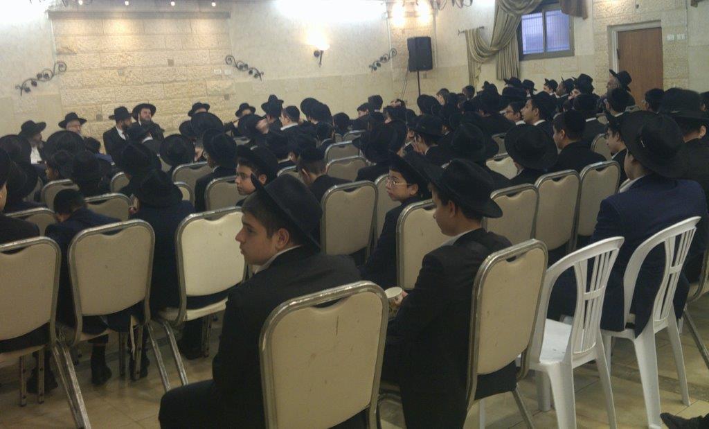 התלמידים שגדשו את האולם מפה לפה הקשיבו לדברי החיזוק עובדו והנהגות על ראש הישיבה זצ"ל.