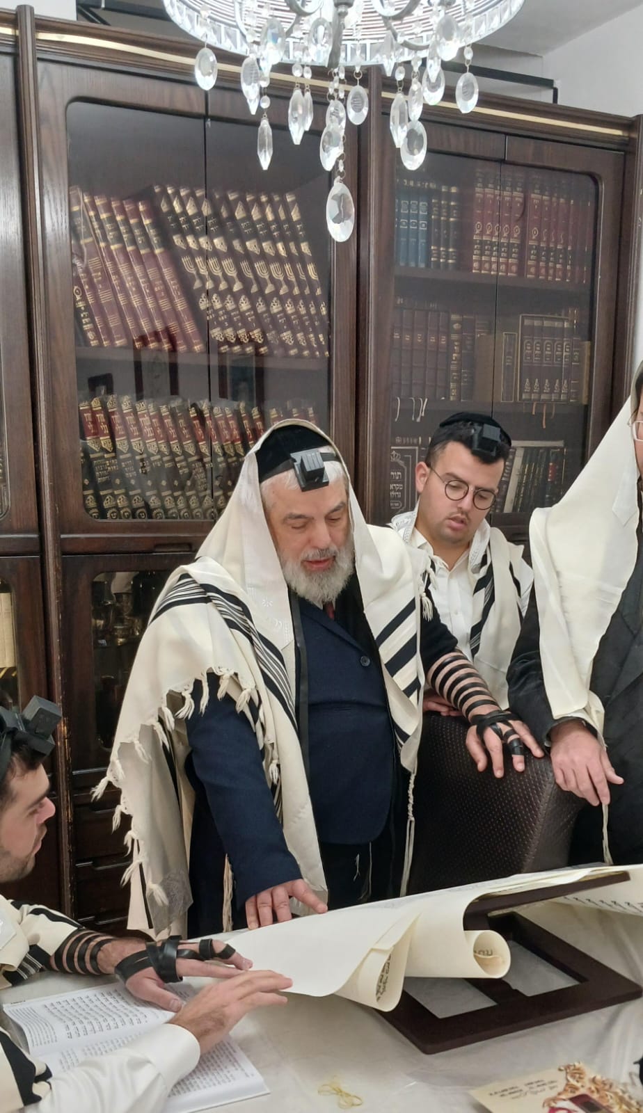 מעמד קריאת המגילה בבית מדרשו של הגאון רבי מכלוף עזריאל שליט"א ברובע ז' רב קהילת "בני תורה חניכי הישיבות"