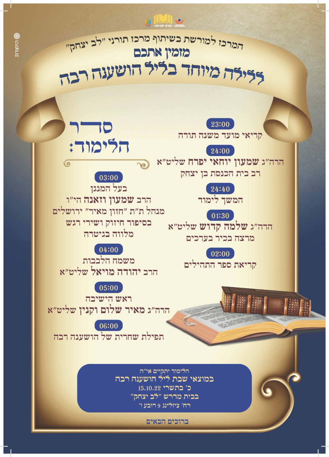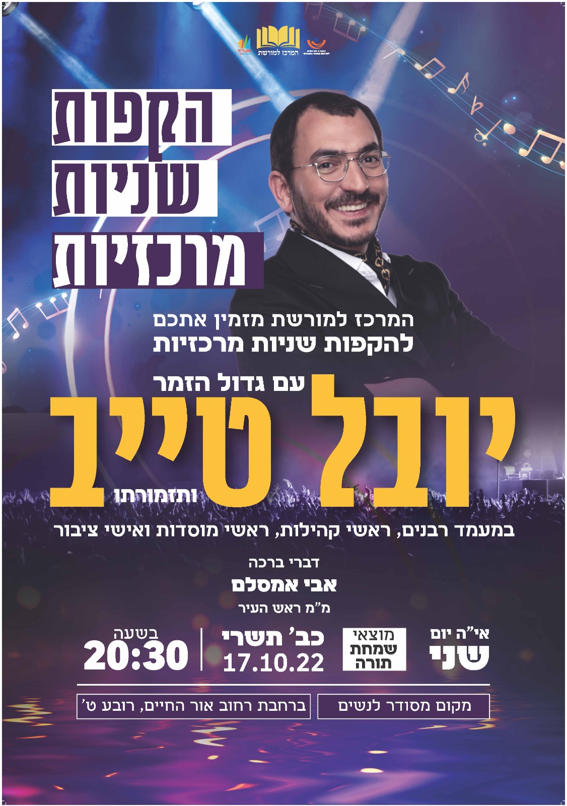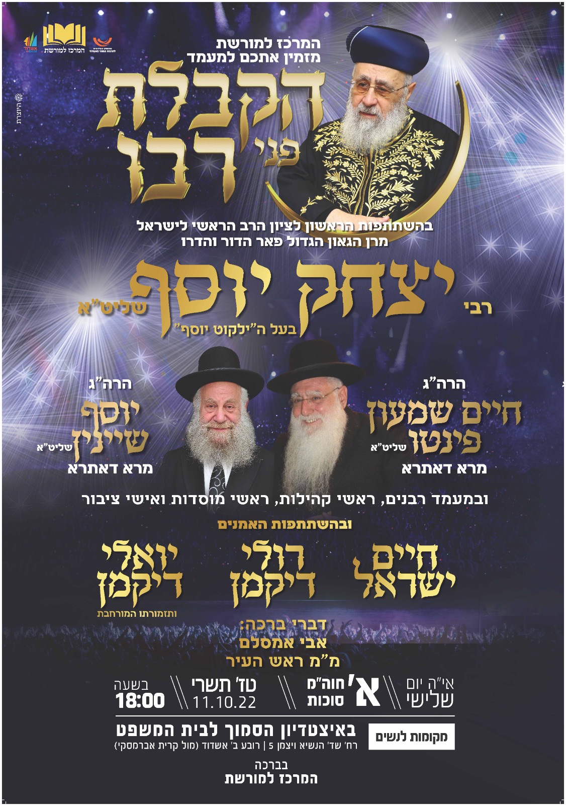 האירוע המרכזי ייערך ביום שלישי עם הקבלת פני רבו המסורתית במעמד הראשל"צ והרב הראשי לישראל הגה"ג רבי יצחק יוסף שליט"א, בליווי ענק הזמר חיים ישראל ותזמורתם של יואלי ורולי דיקמן.