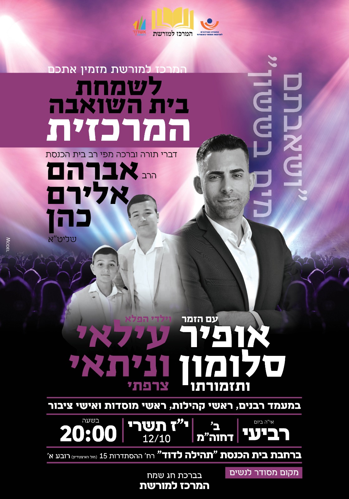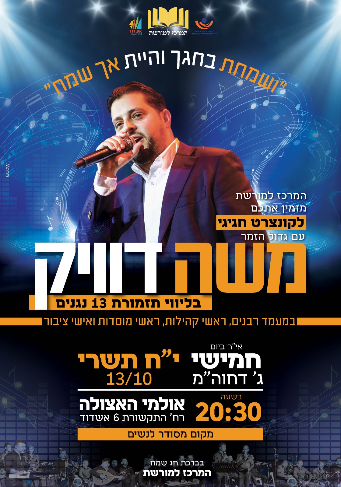 "ושמחת בחגיך": בחג הסוכות הקרוב ייהנו תושבי אשדוד והסביבה מסדרת מופעים מרשימה מבית היוצר של אבי אמסלם ו"המרכז למורשת".