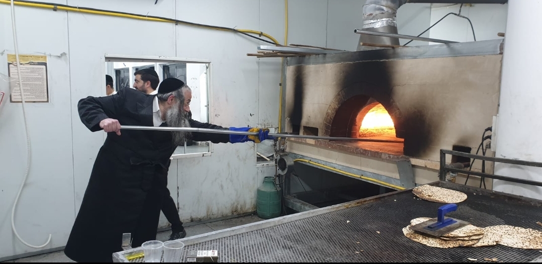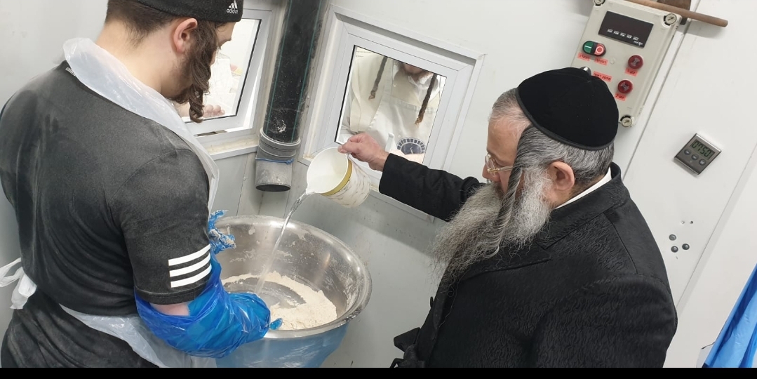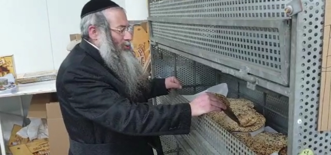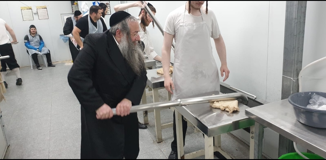 במאפיית אירנשטיין החלו החבורות באפיית מצות מצווה של ערב הפסח * צפו בעסקן הפיטסבורגאי ר' שאול לנדא בביצוע כל פעולות האפיה