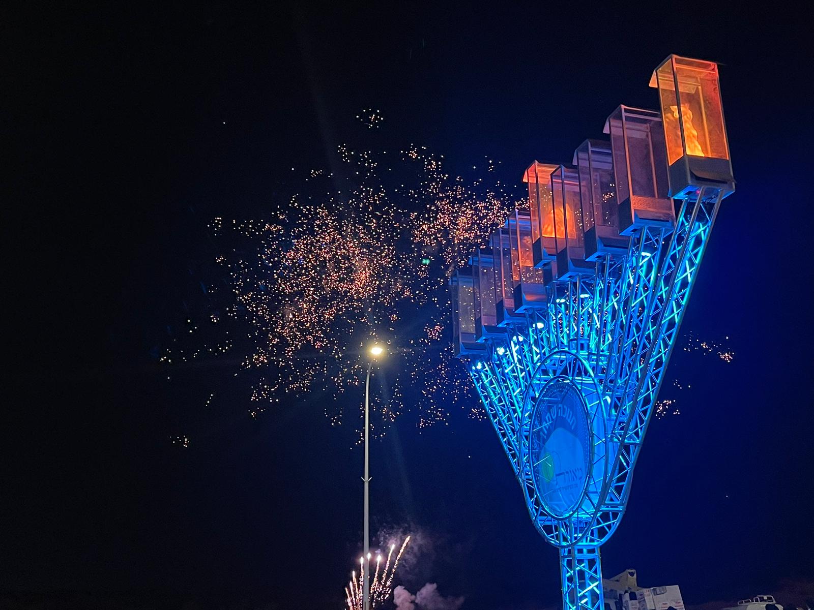 ראש העיר הדליק את הנר הראשון בחנוכיה הגדולה ביותר בעיר