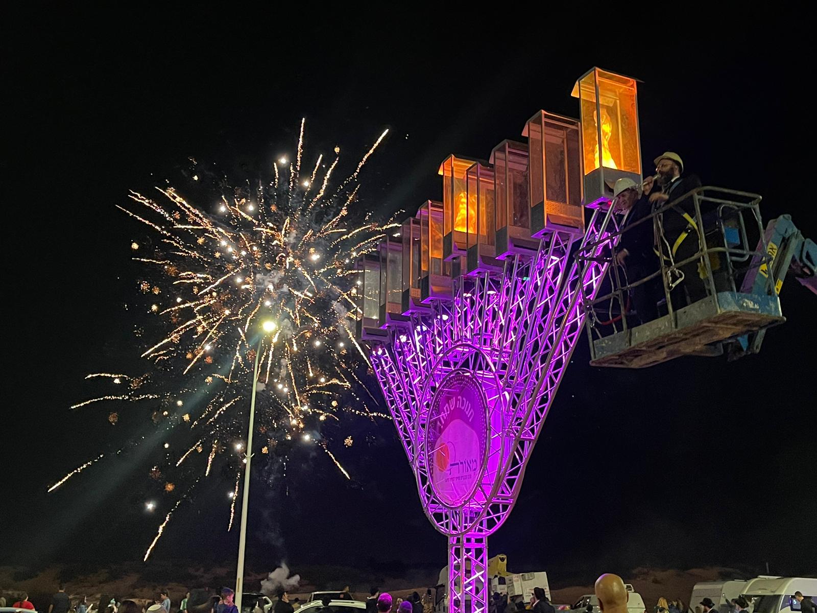 ראש העיר ד״ר יחיאל לסרי הדליק הערב ברובע ט"ו נר ראשון של חנוכה יחד עם הרב מנחם עמאר, רב מרכז ״אור מנחם״, בחנוכייה הכי גבוהה בעיר שנישאת לגובה 12 מטרים