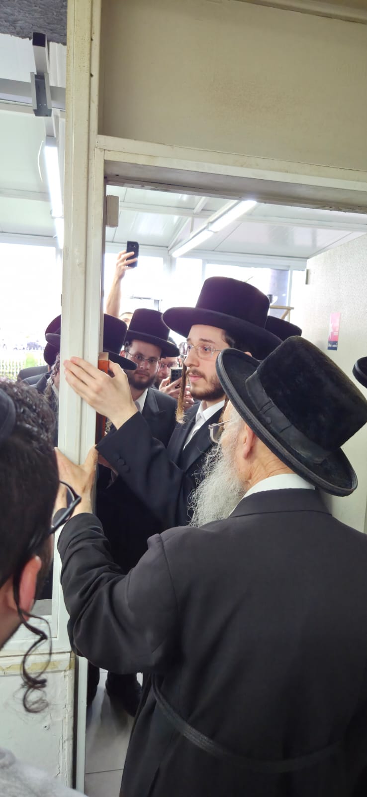 נכדו מאשדוד של הרבי מבעלזא בקביעת המזוזה