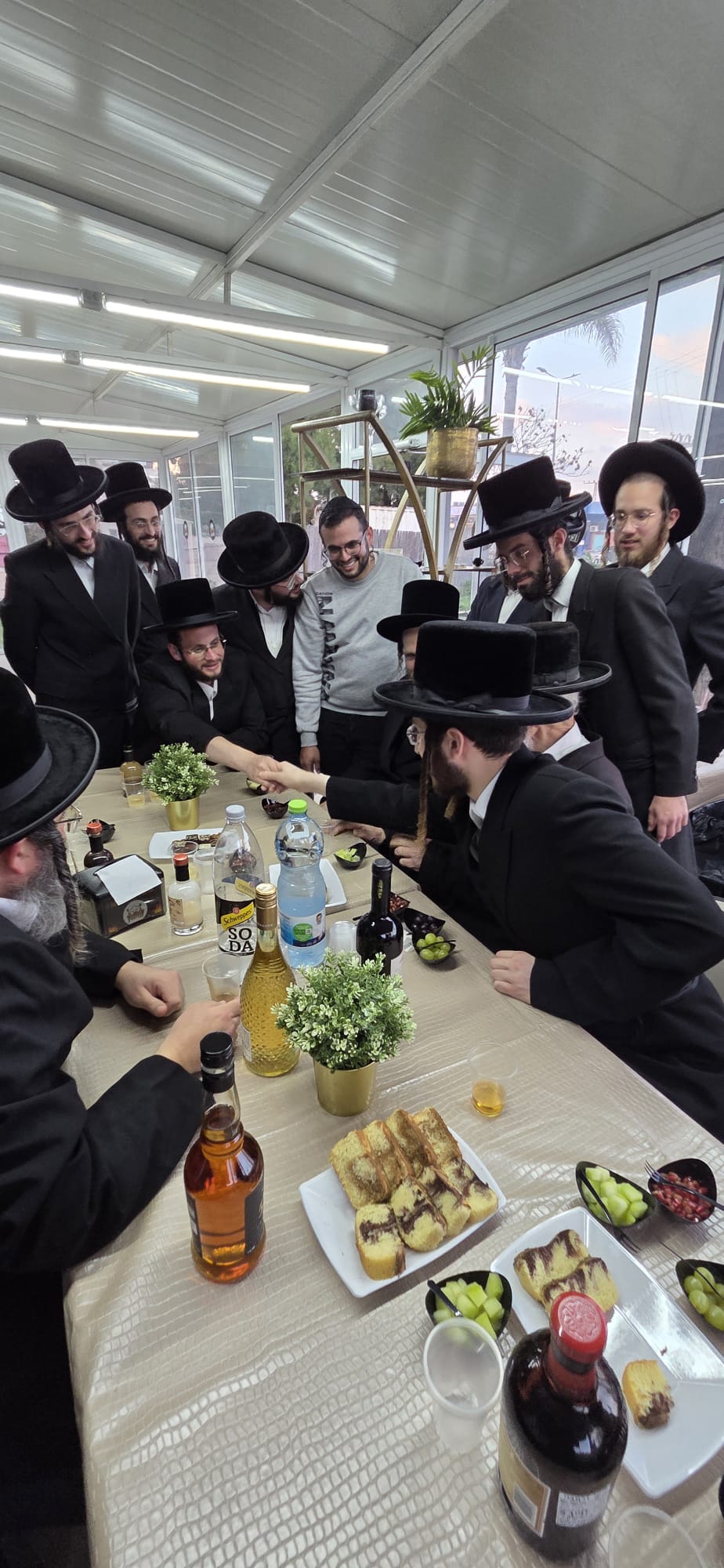 טיש חסידי ו'לחיים' במסעדה: במעמד נכדו של האדמו"ר מבעלזא שליט"א וכן רבה של קהילת בעזלא בעיר הגאון רבי חיים פסח הורביץ שליט"א נערך היום מעמד 'לחיים' לרגל קביעת המזוזות במסעדת 'המטבח בחצר' של השף הבעלזאי שלוימי מושקוביץ. הארוע התקיים ברחבת המסעדה שברח' הבושם 1, איזור התעשיה.