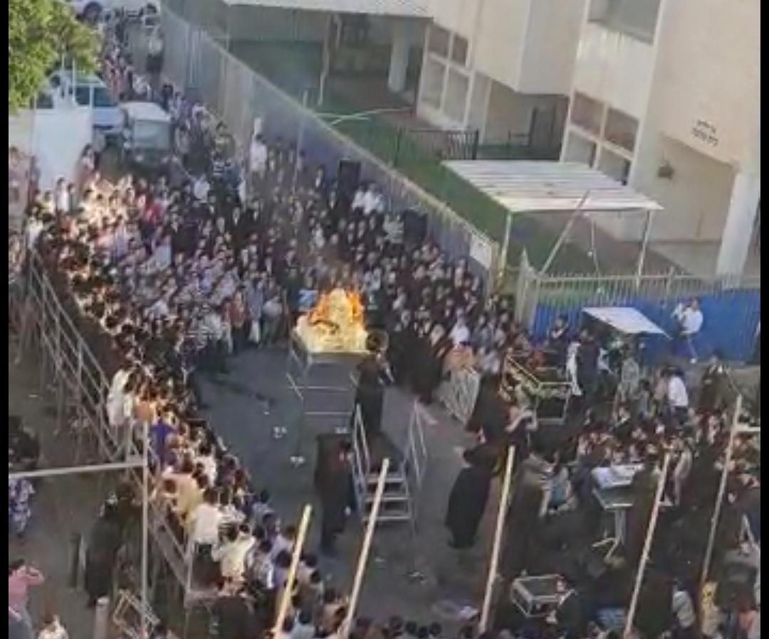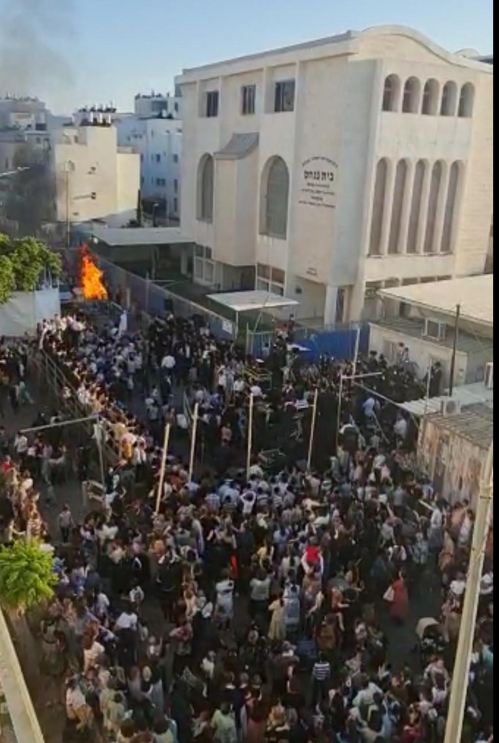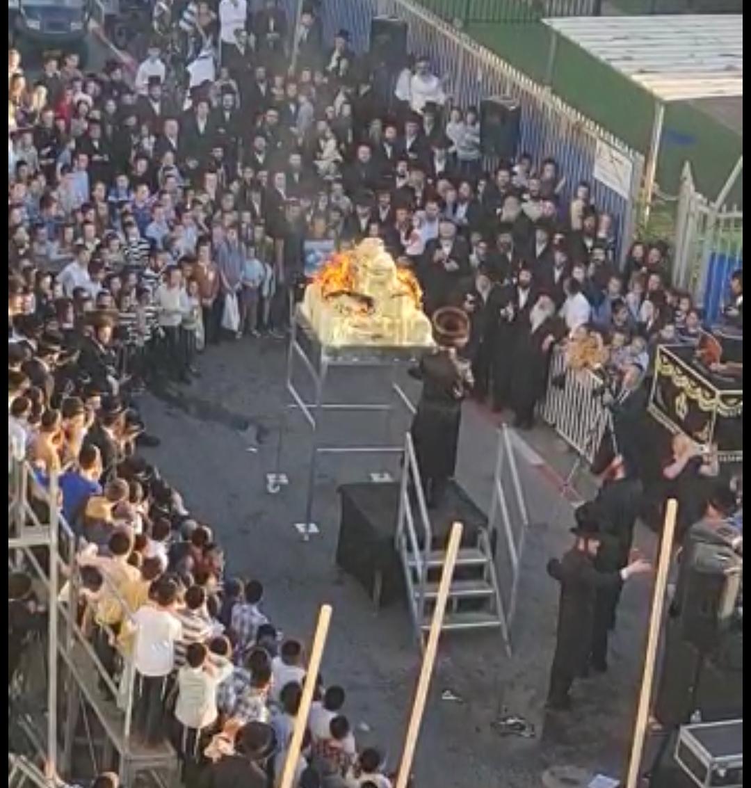 כי פנה יום: עם דמדומי חמה התאספו חסידי טאלנא בעיר עם קהל המונים לקראת מעמד ההדלקה לכבוד התנא רבי שמעון בר יוחאי במרכז הכביש ליד בית המדרש של החסידות ברובע ז'.