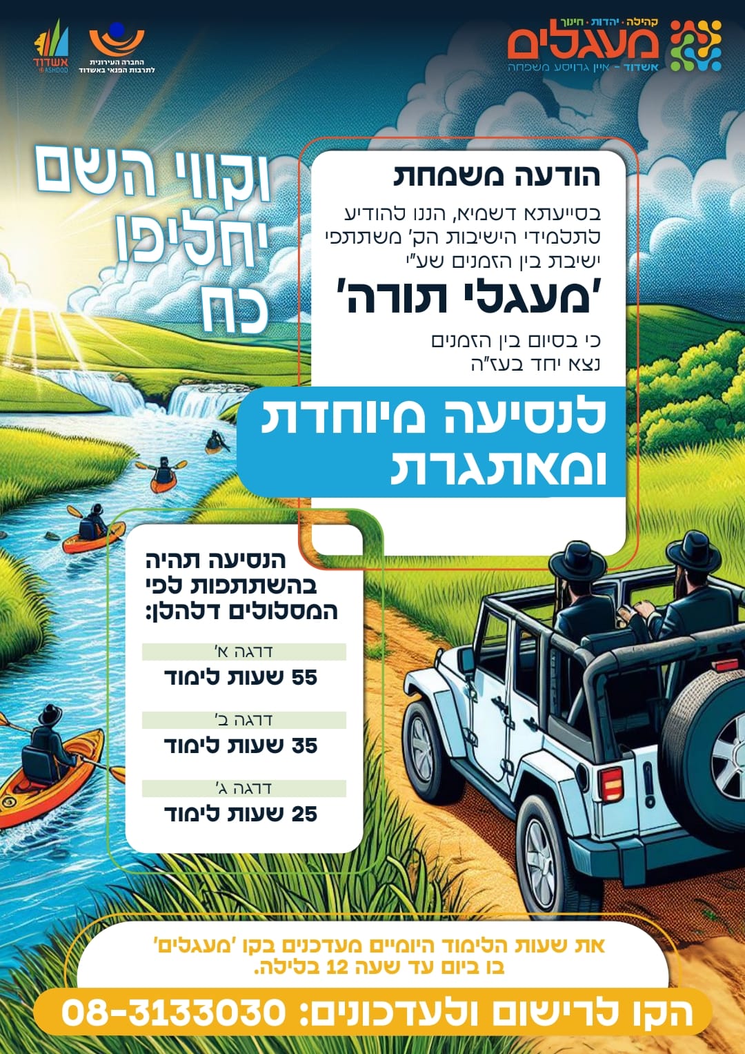 האגף החדש יוצא לדרך: כפי שהבטיחו, השיקו היום ראשי "אשדוד התורנית - דגל" את האגף שיפעיל את פעילות התרבות התורנית הייעודי לציבור החסידי ליטאי. שמו של האגף החדש: "מעגלים - איין גרויסע משפחה" (משפחה אחת גדולה).