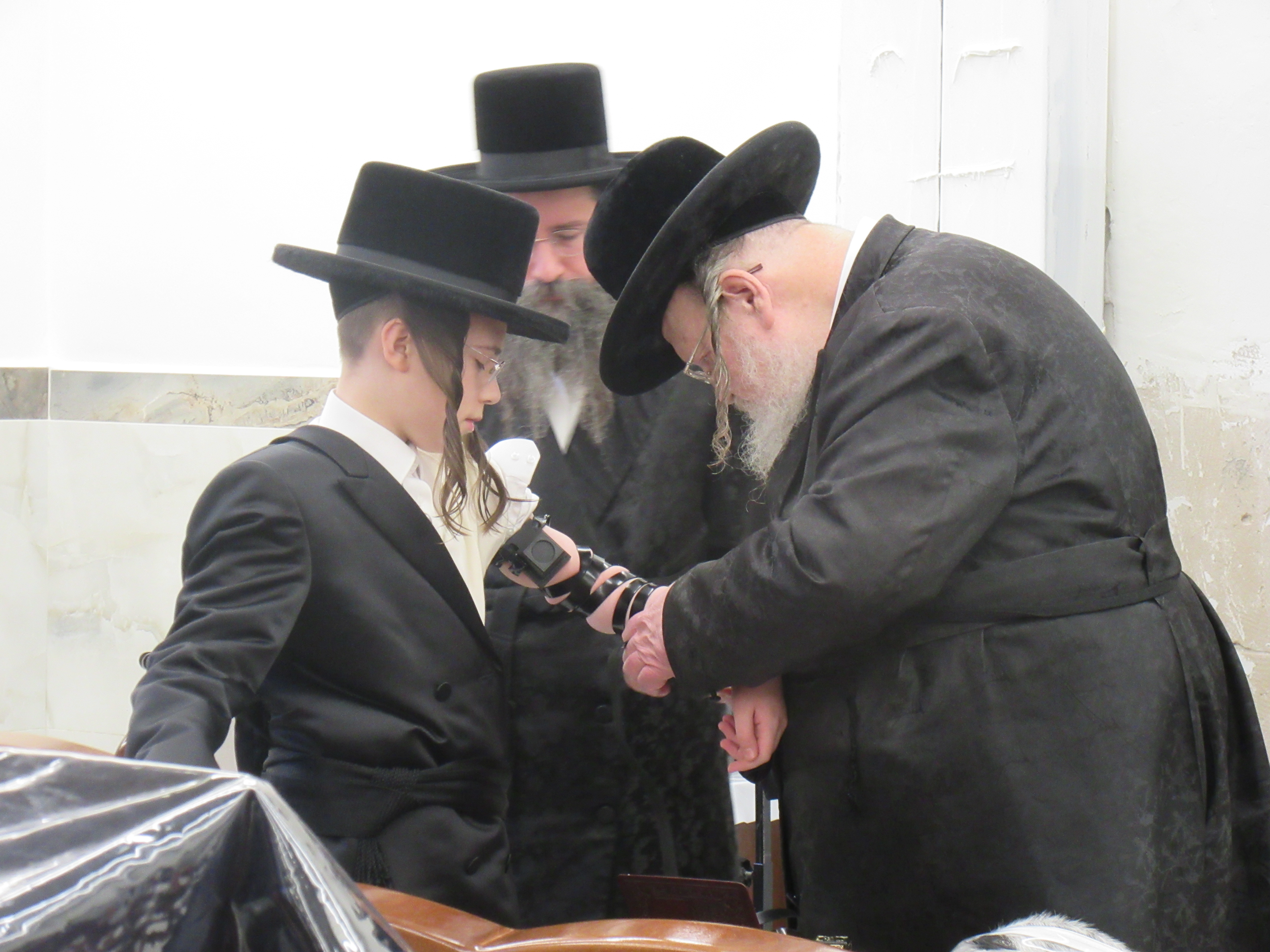 טרם בר המצוה: הסב, האדמו"ר מביאלא, הניח תפילין לנכדו