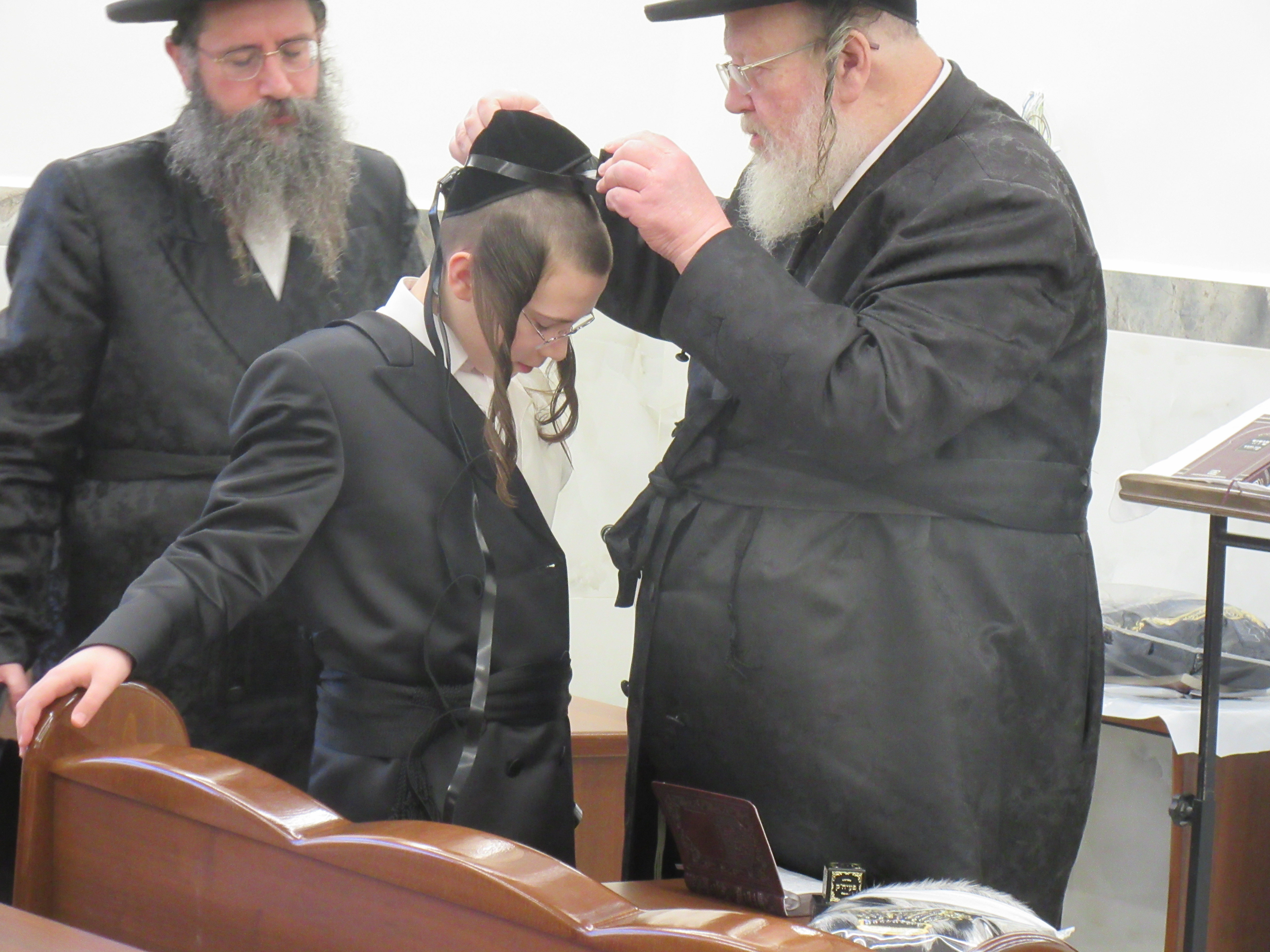 לפני בר המצווה, הניח האדמו"ר מביאלא פשיסחא, תפילין לנכדו - בן האדמו"ר מטאלנא