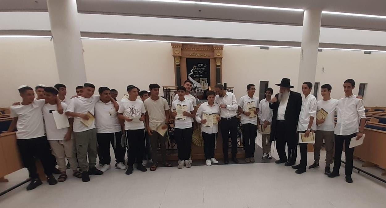 בסיום הדברים, הגר"מ אבוחצירא חילק תעודות הצטיינות לתלמידים שכתבו חידושי תורה.
