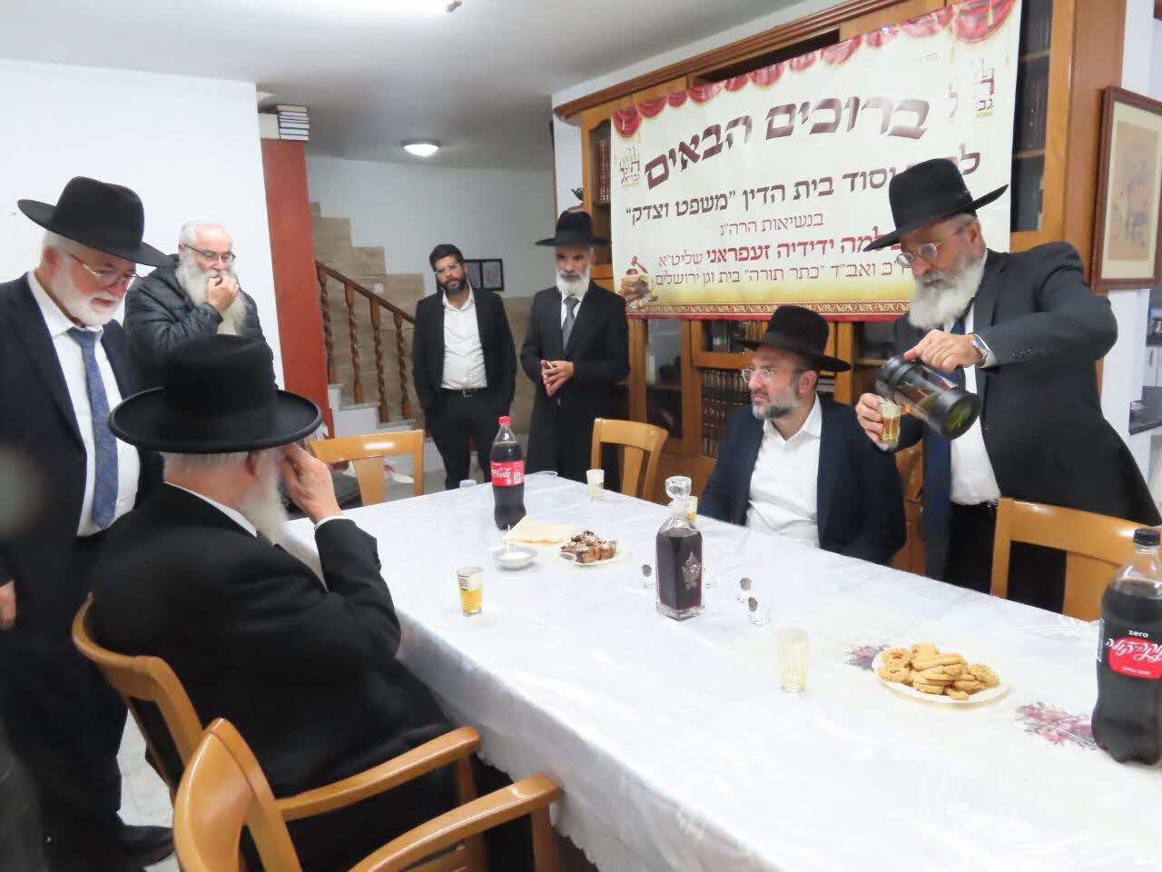 מרן הגאב"ד הגאון הגדול רבי שלמה ידידיה זעפראני שליט"א נשיא קהילות האברכים בארה"ק ואב"ד "כתר תורה", טרח והגיע במיוחד לחנוך את בית הדין החדש ונשא דברי חיזוק בפני הדיינים והרבנים.