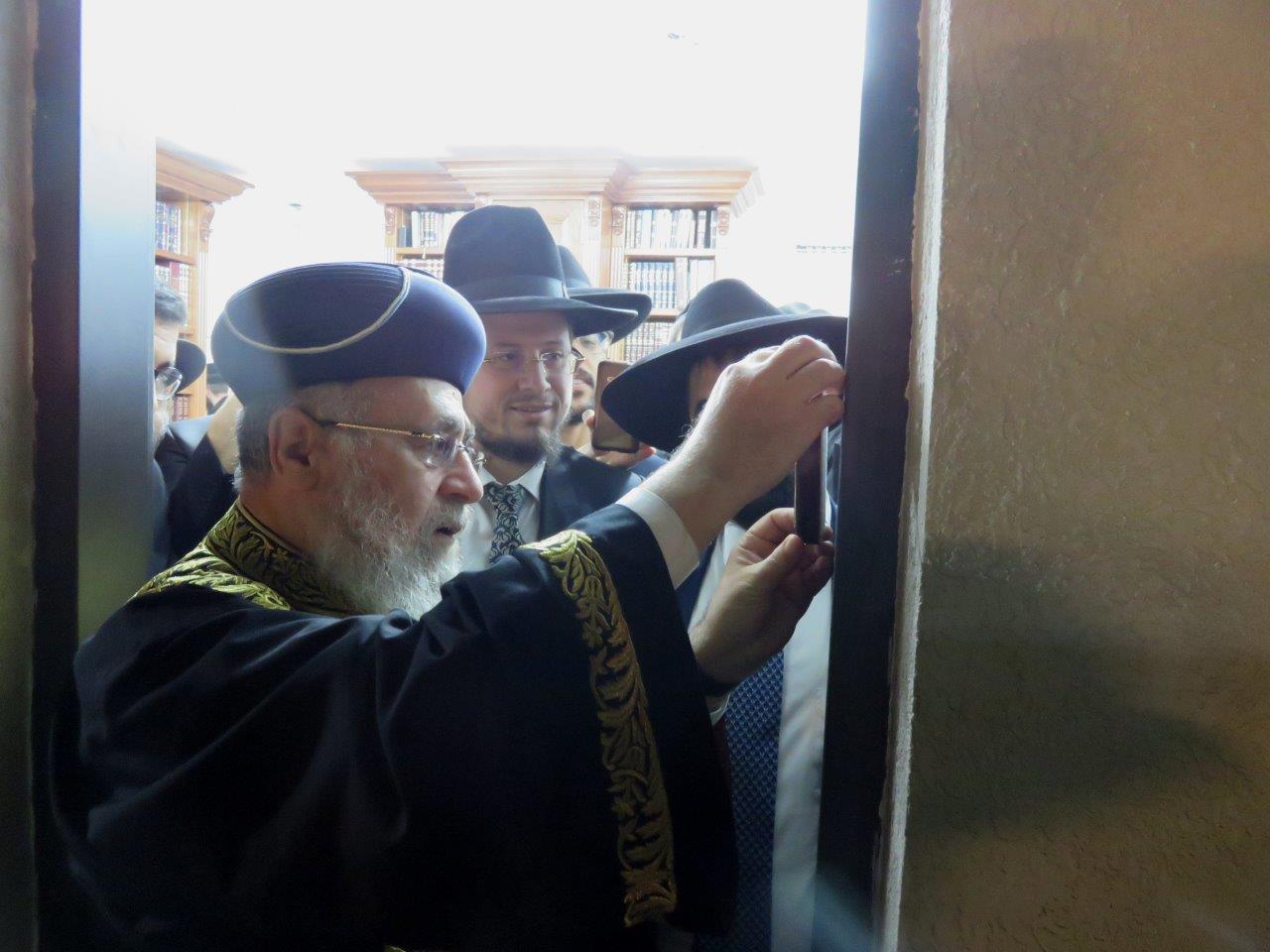 בסיום הראש"ל שליט"א קבע מזוזה בפתח בית המדרש ובירך את ראש הכולל הגר"א דרעי והאברכים שיעלו מעלה מעלה ויזכו להגיע 'לאסוקי שמעתתא אליבא דהלכתא' ולהיות יושבי על מדין.