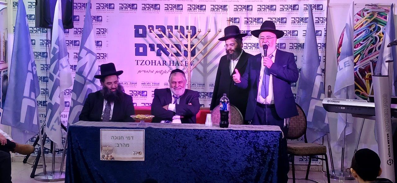 בהשתתפות ילדים ובחורים, נערכה מסיבת חנוכה מרכזית עם הדלקת נרות חנוכה, באולם שע"י בית כנסת של רשת "צוהר הלב" במעמד הרב עובדיה דהן יו"ר המועצה הדתית, הרה"ג ר' אברהם בוגנים רב מחלקת הכשרות ברבנות ויד ימינו של המרא דאתרא הגה"צ רבי חיים שמעון פינטו שליט"א ואורח הכבוד מר עופר כראדי – יו"ר המועצה הדתית בבאר שבע שהיה אורחו של הרב דהן.