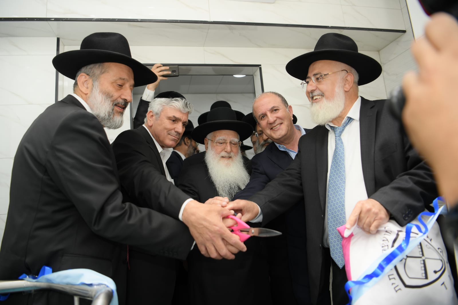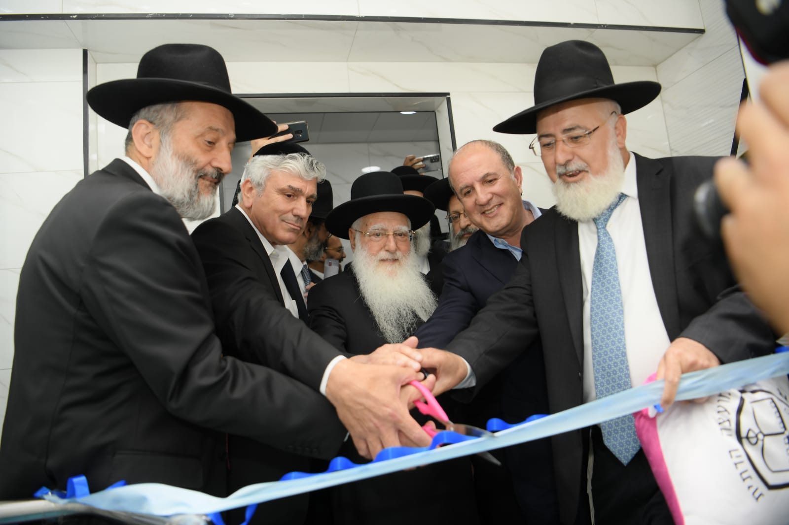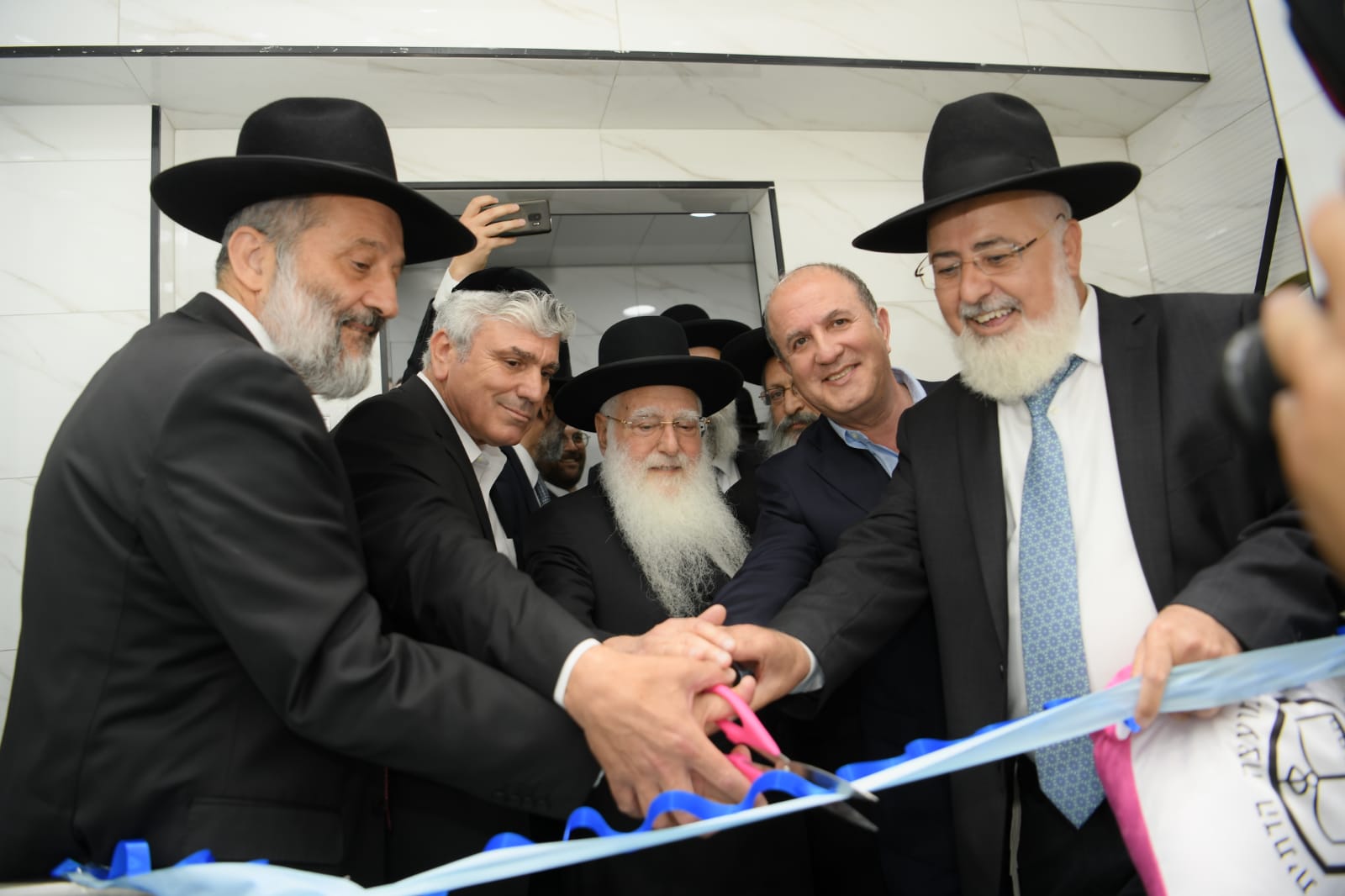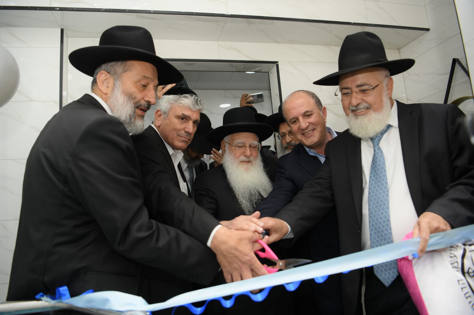 הרב אריה דרעי כובד בגזירת הסרט יחד עם הרבנים הראשיים וראש העיר עם ראש המועצה הדתית בשני המקוואות.